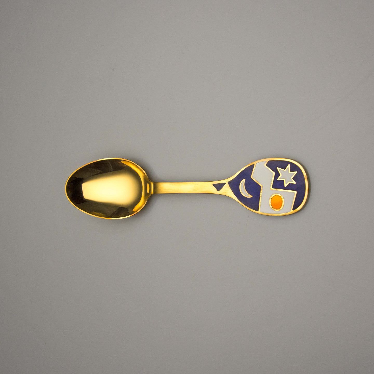 Juleske år 2004 i guldbelagt sterling sølv med stjerne, sol og måne motiv