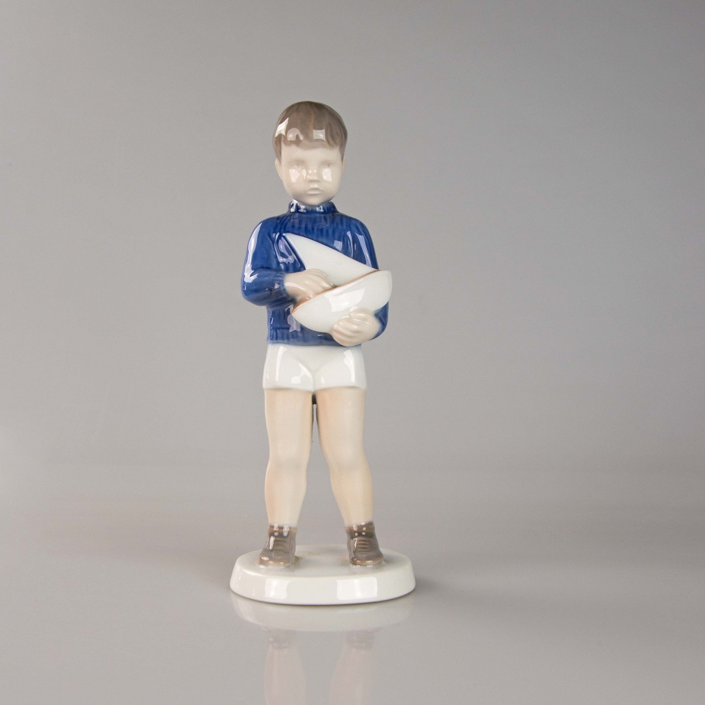 Figur i porcelæn med motiv af dreng med sejlbåd nr. 2380