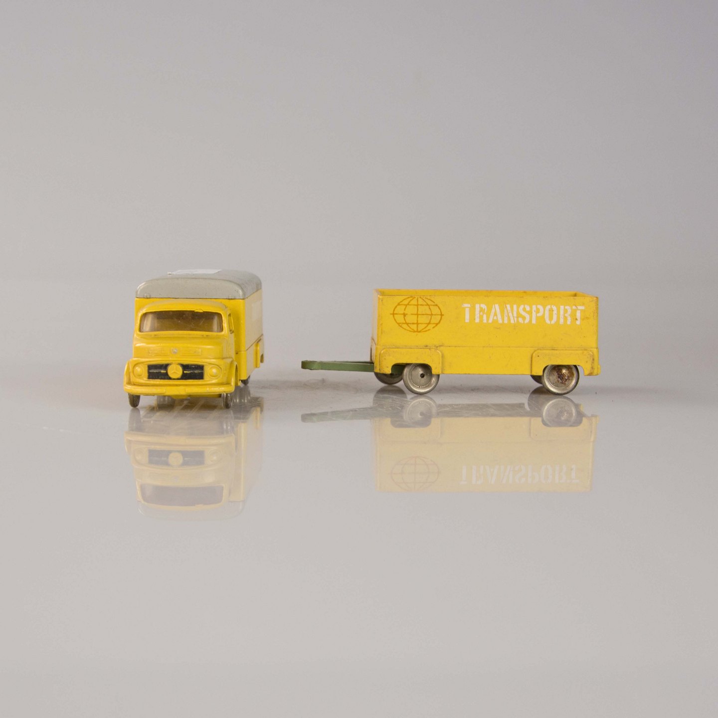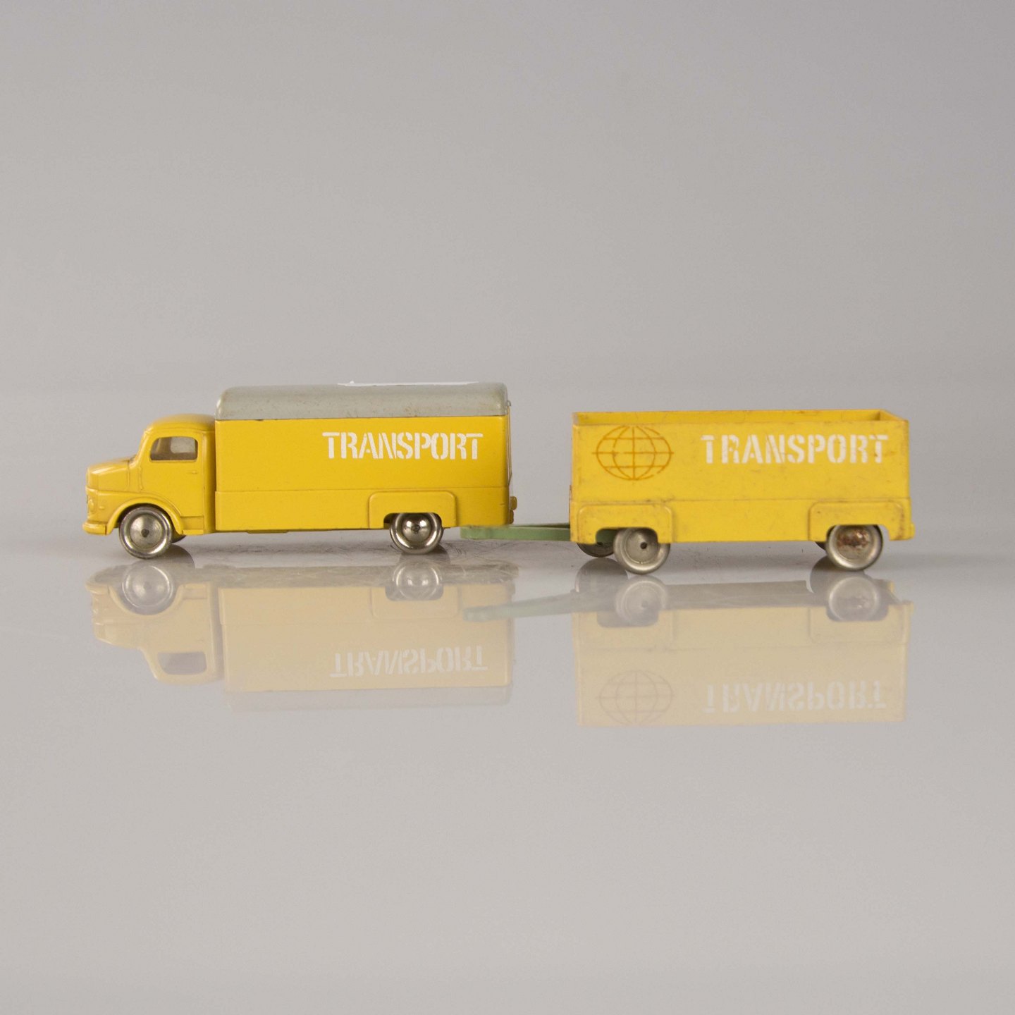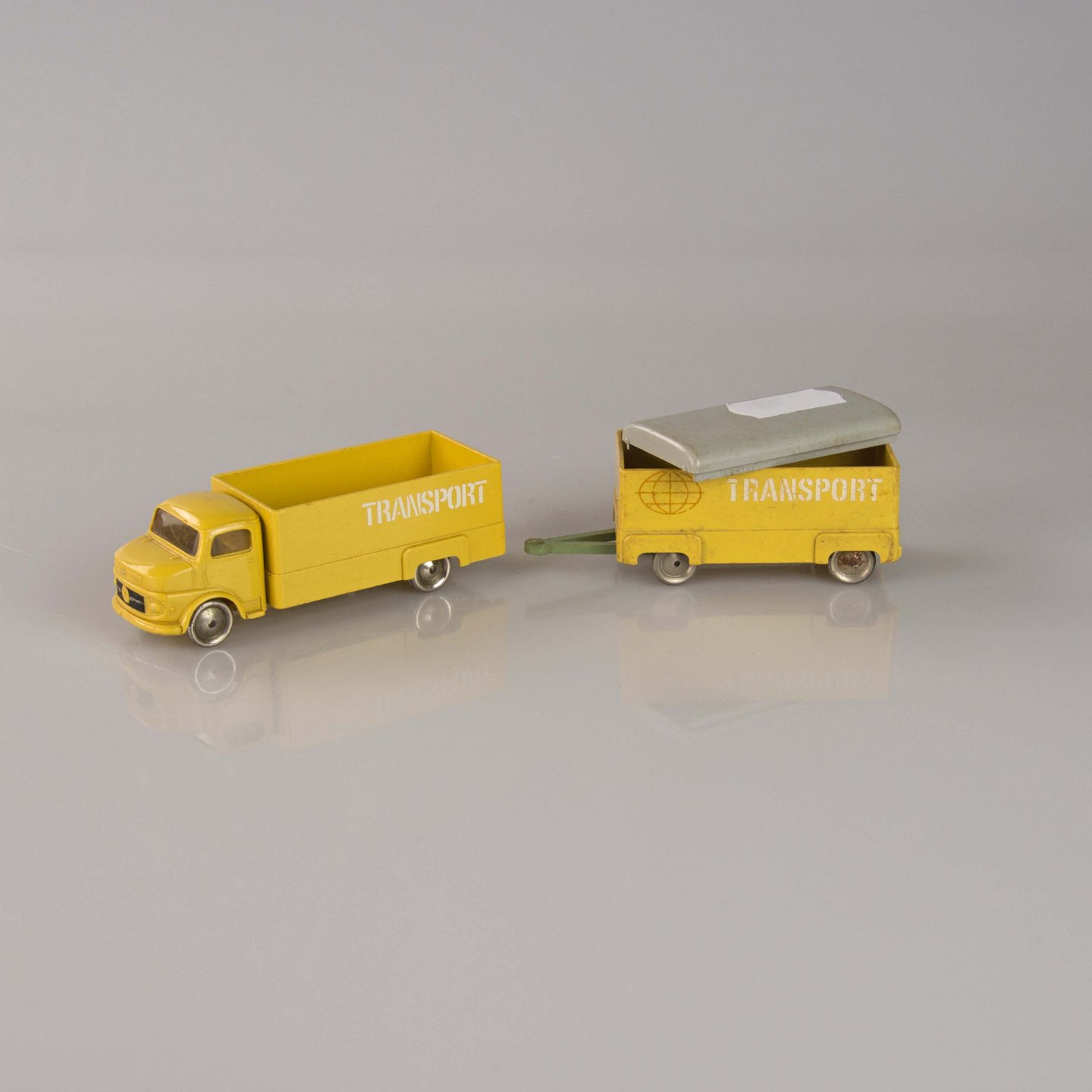 Mercedes lastbil med anhænger i plast med teksten transport