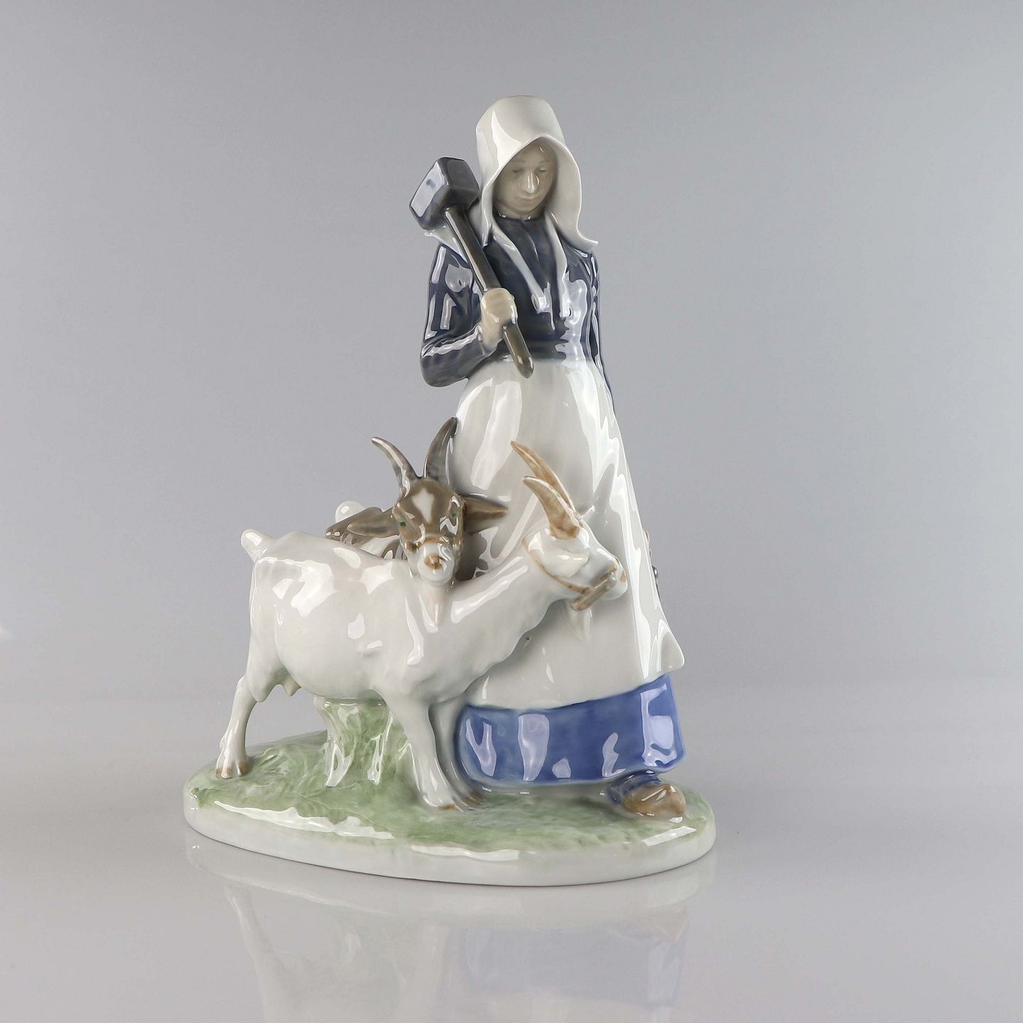 Figur i porcelæn med motiv af bondepige med geder nr. 694