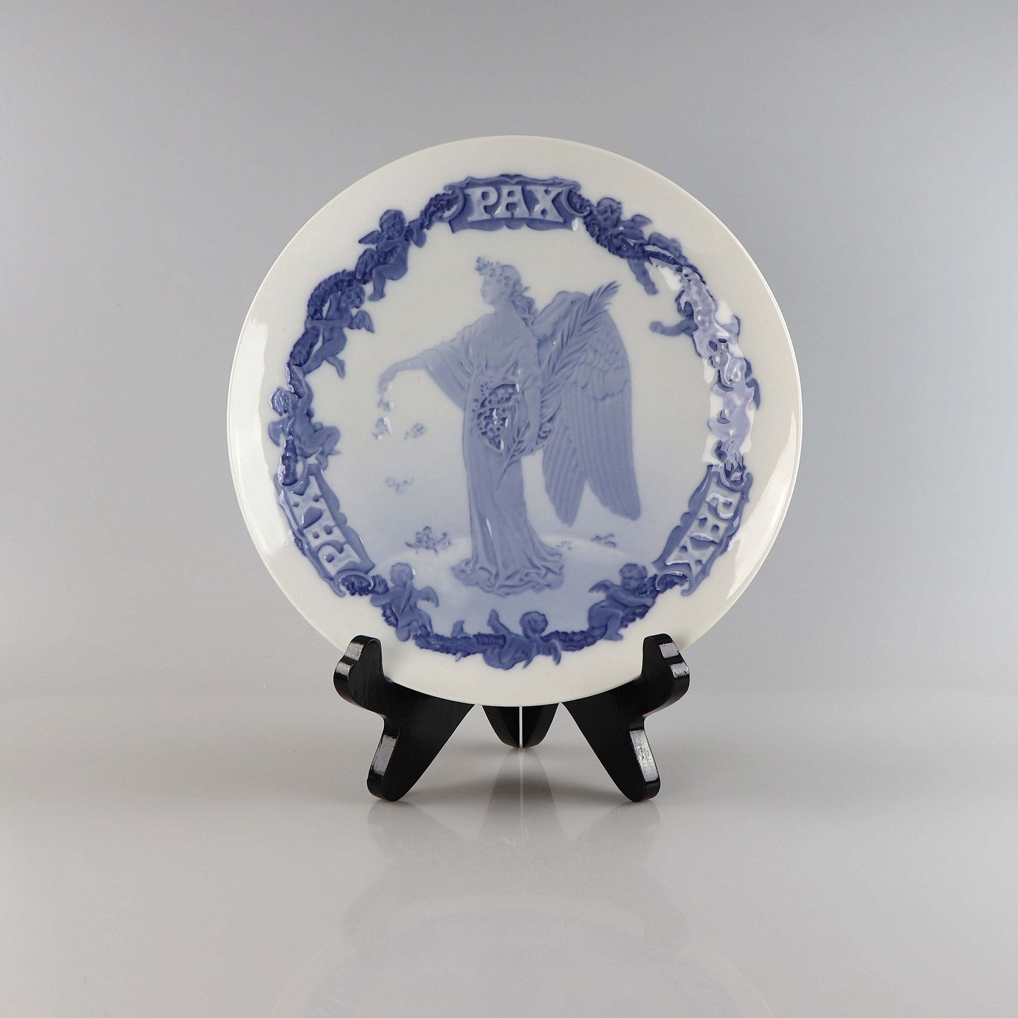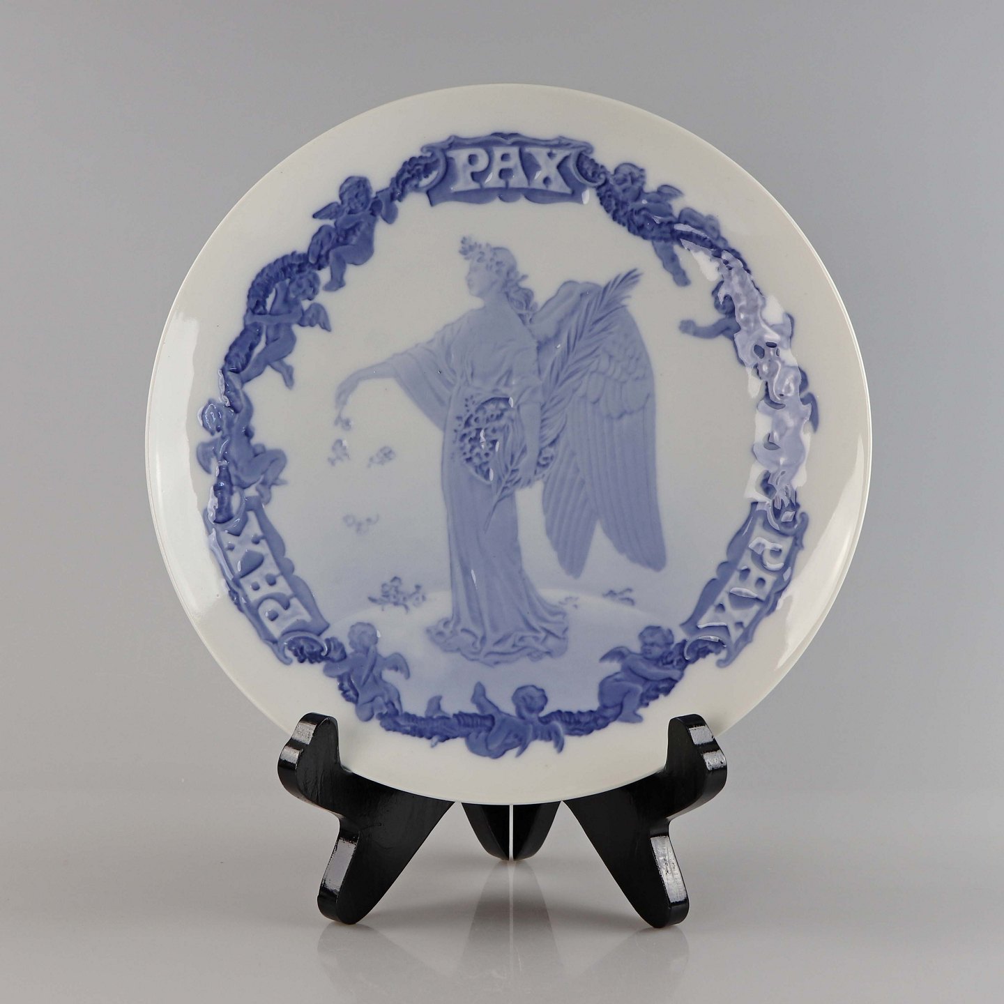 Mindeplatte i porcelæn med motiv af en fredsengel