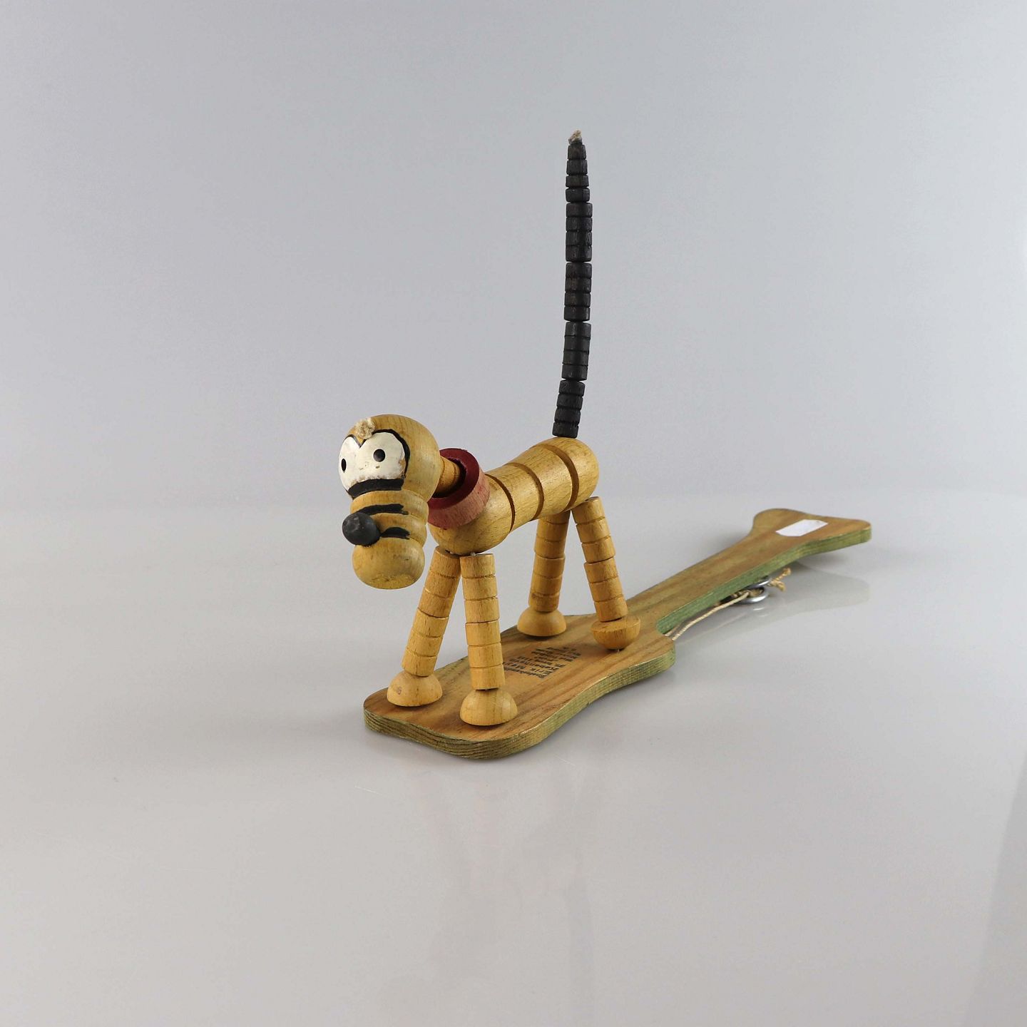 Legetøjshund i træ med motiv af Walt Disney's Pluto