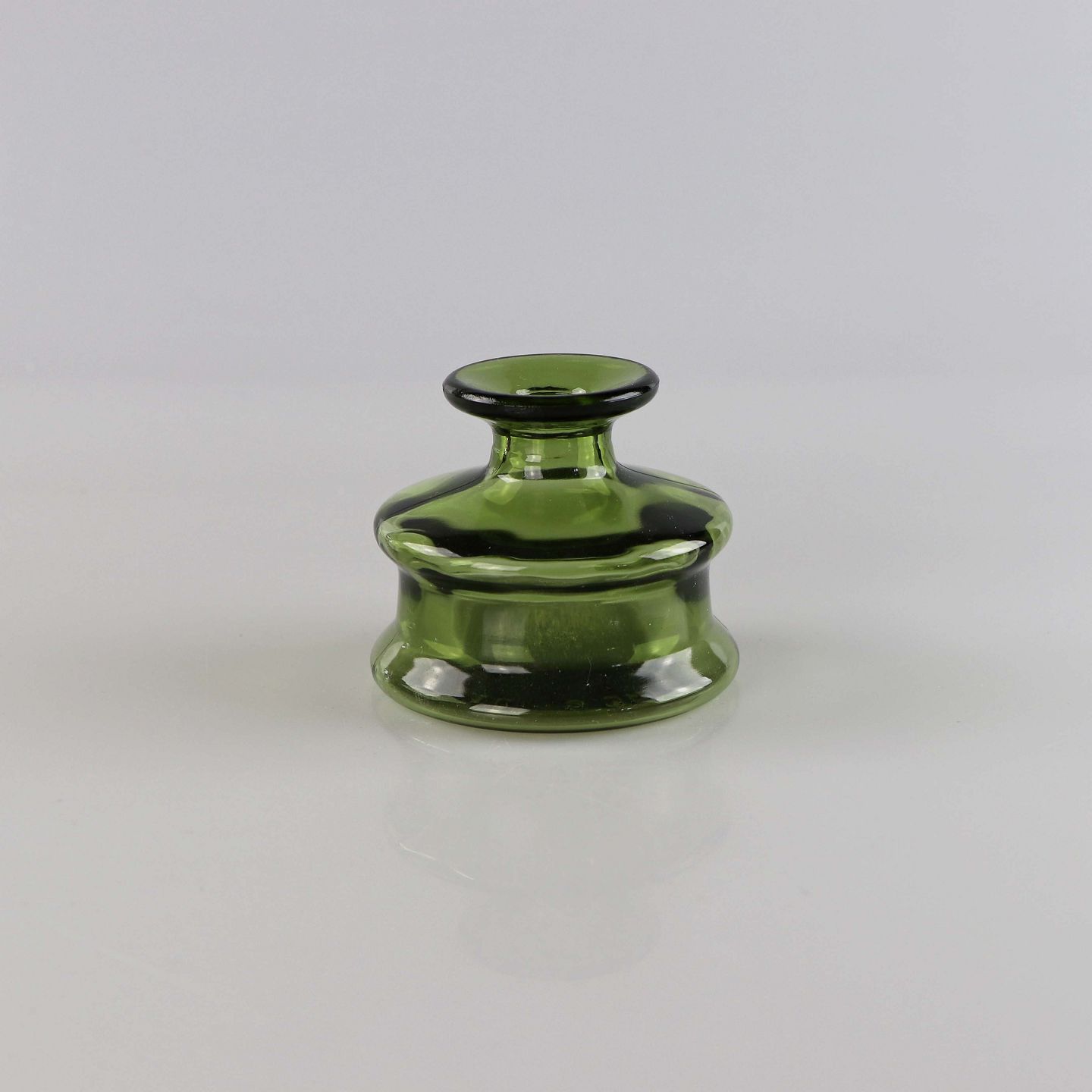 Mindre vase eller lysestage i grøn glas