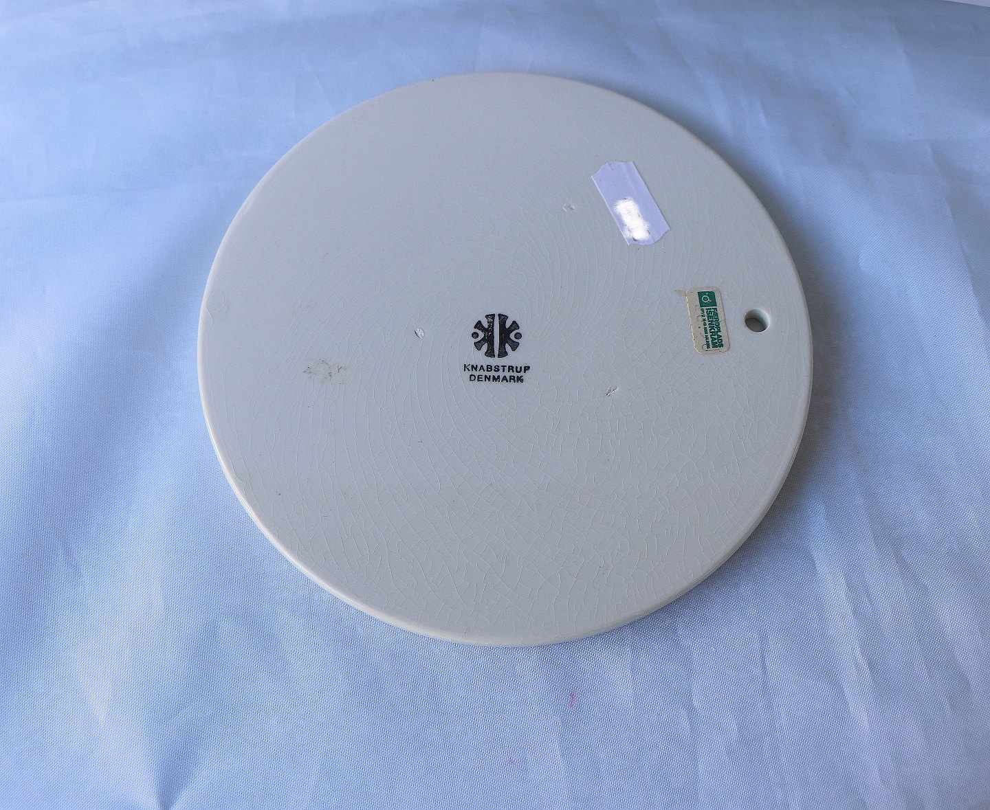 Robert Storm P. platter/smørrebrædder, fra Knabstrup. Platterne er med citater fra Storm P. Motivet er tegnet med sort streg
