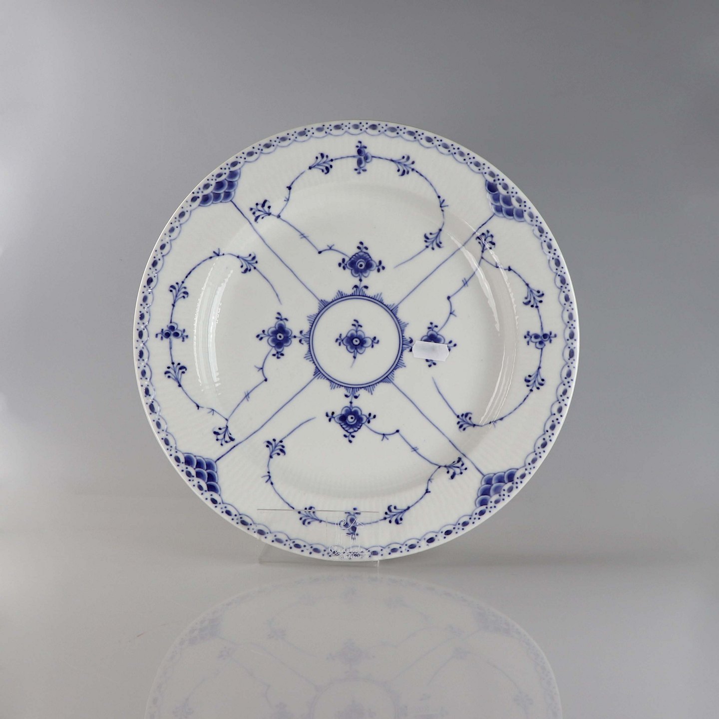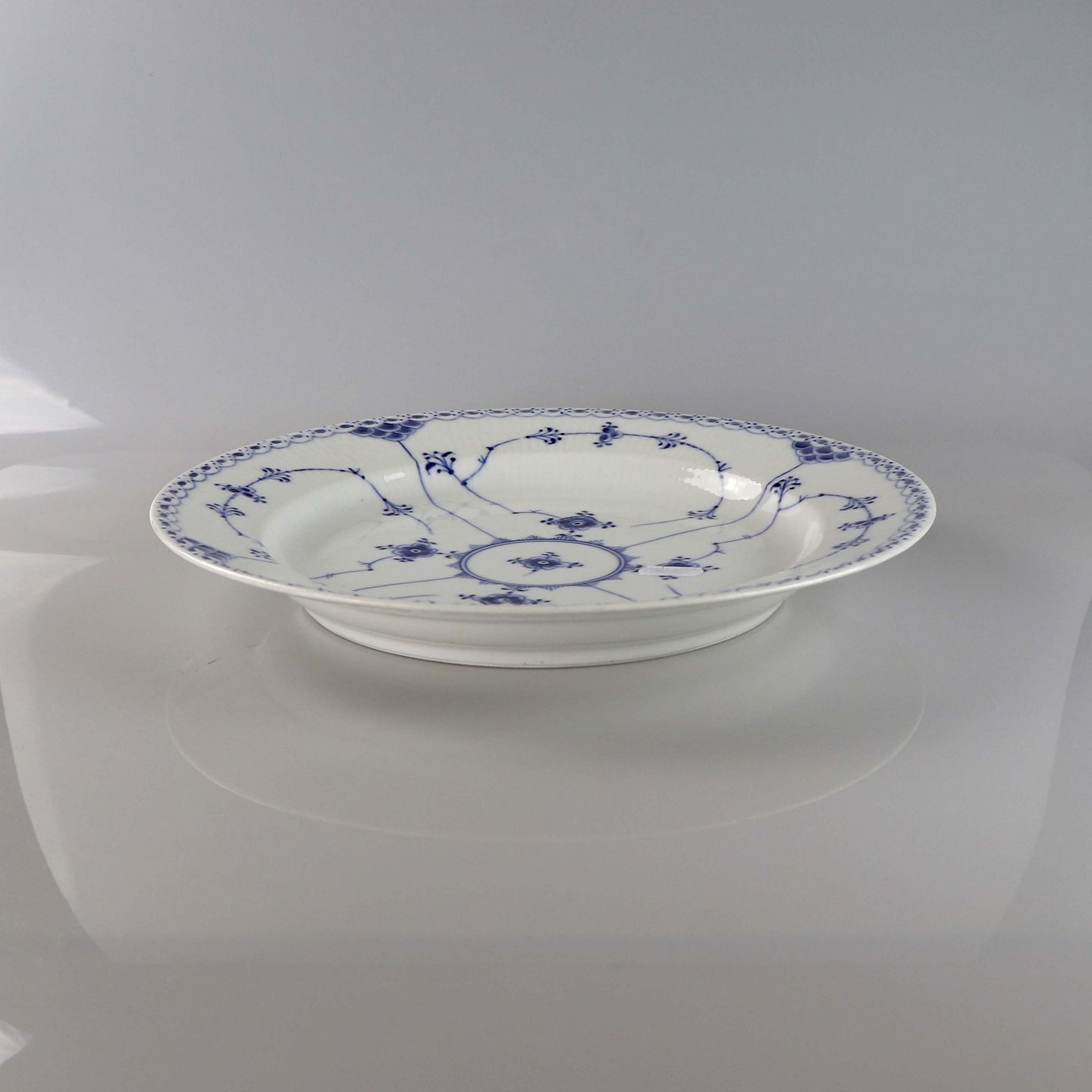 Rundt fad i porcelæn i serien musselmalet halvblonde nr. 1/538