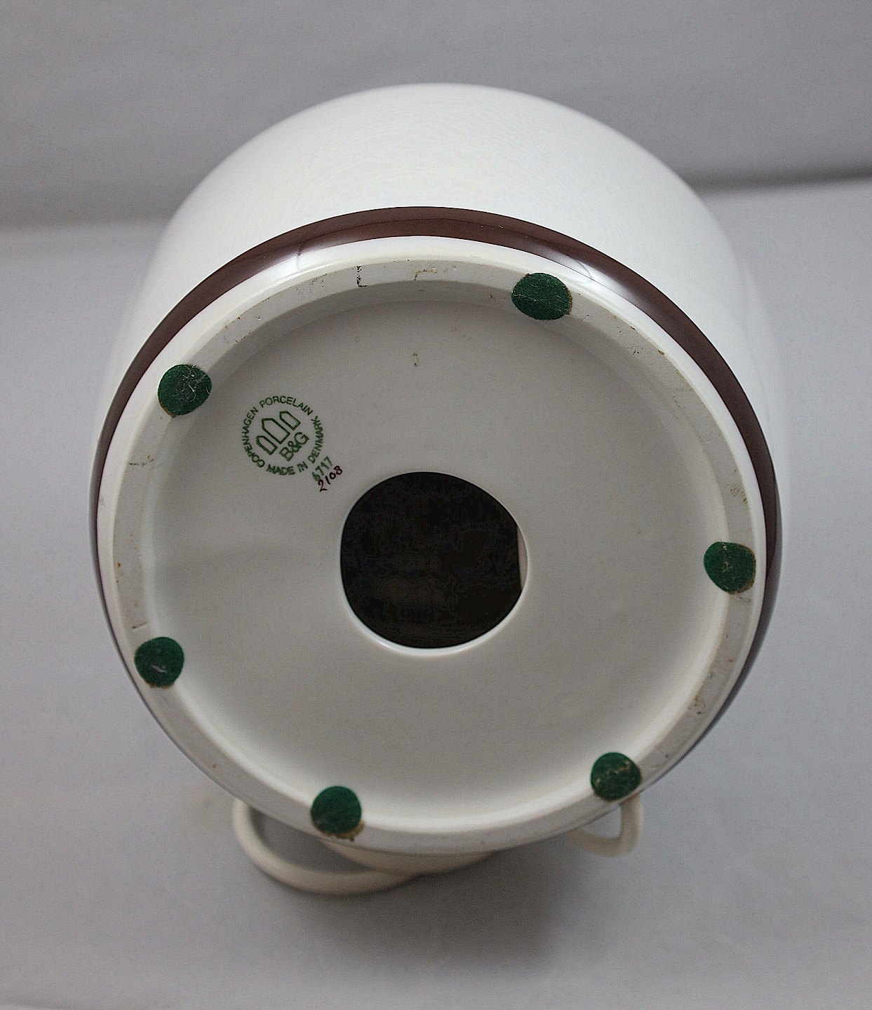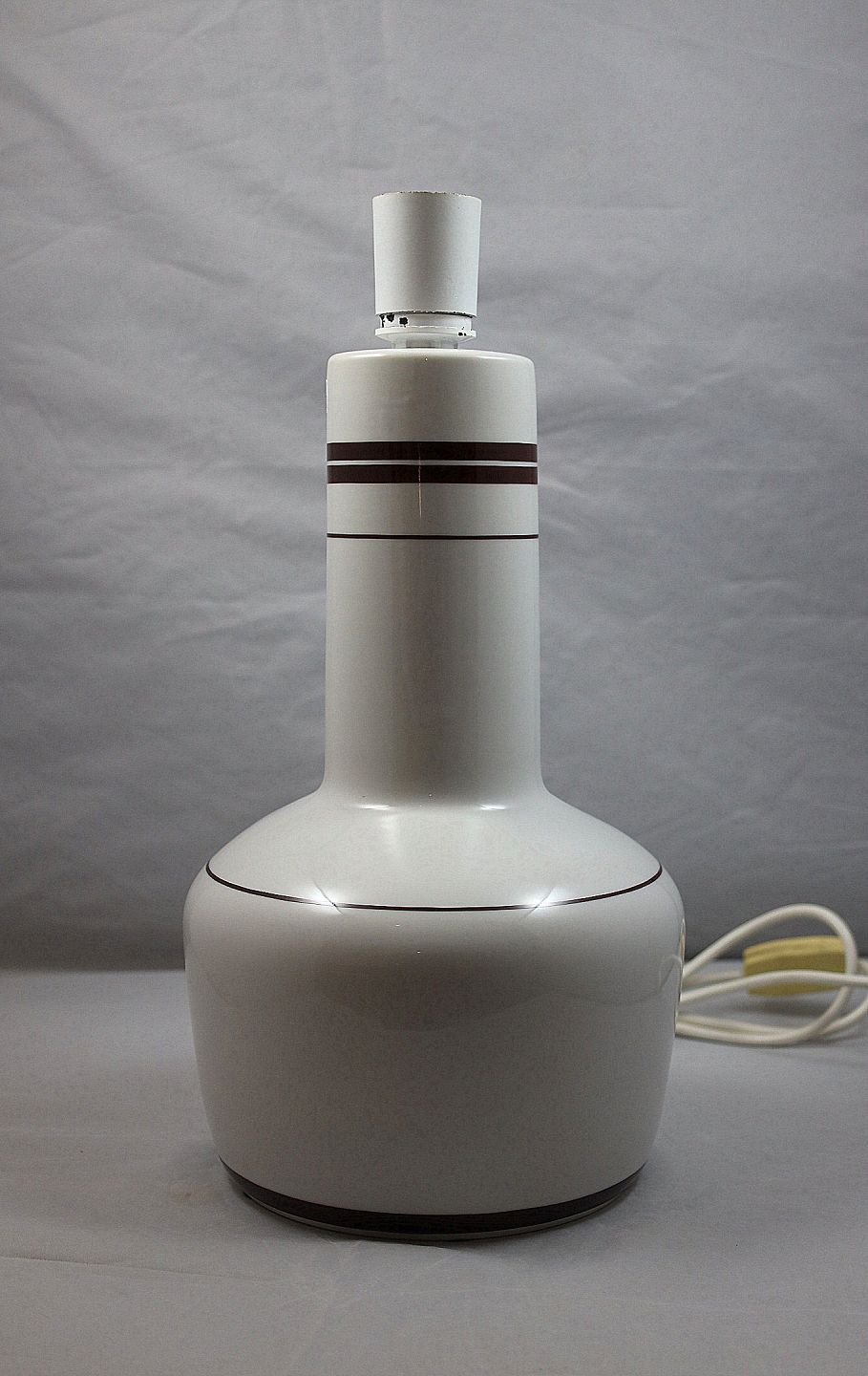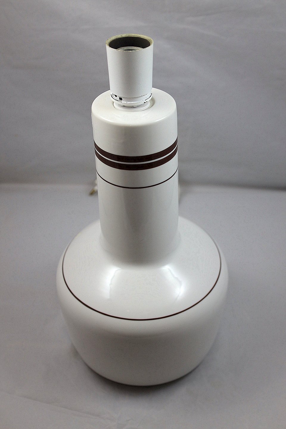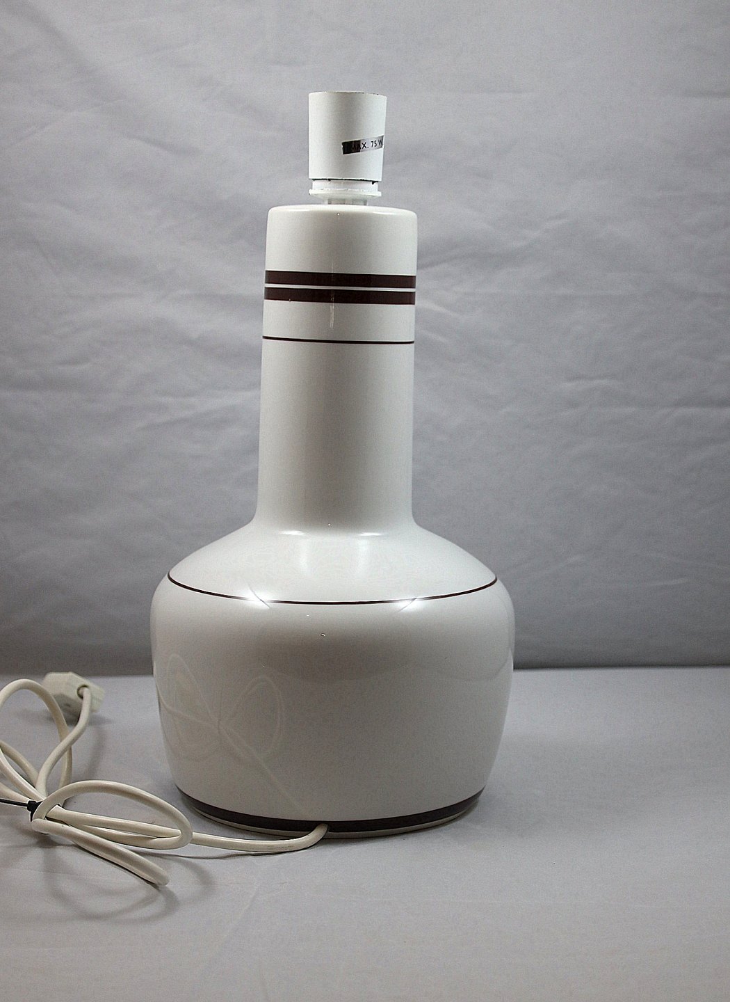 Bing & Grøndahl, bordlampe 6717/2108. Vintage 1979. Hvid porcelænslampe med mokkabrun streger som dekoration