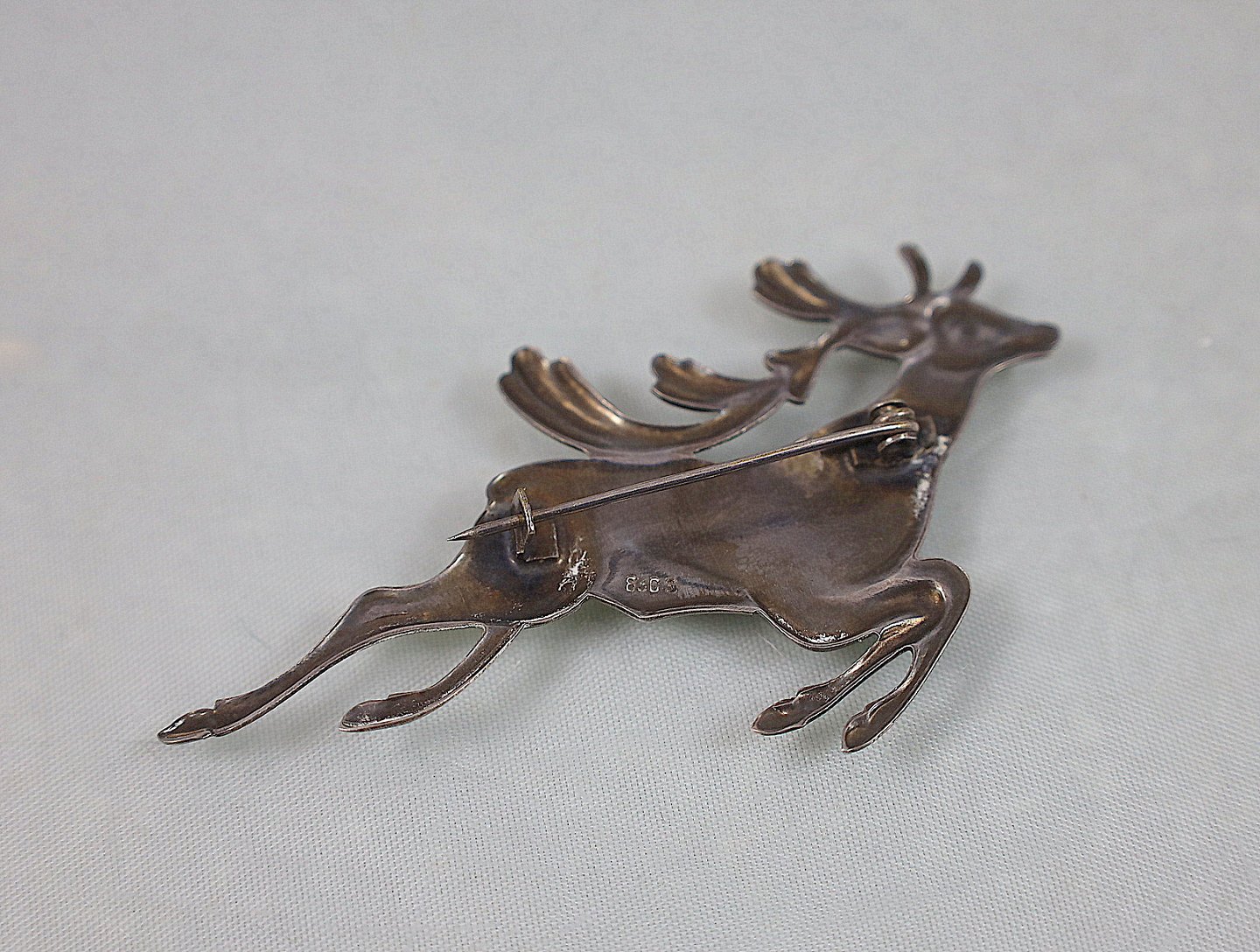Kronhjort broche, i skønvirkestil, brochen er af 830s sølv