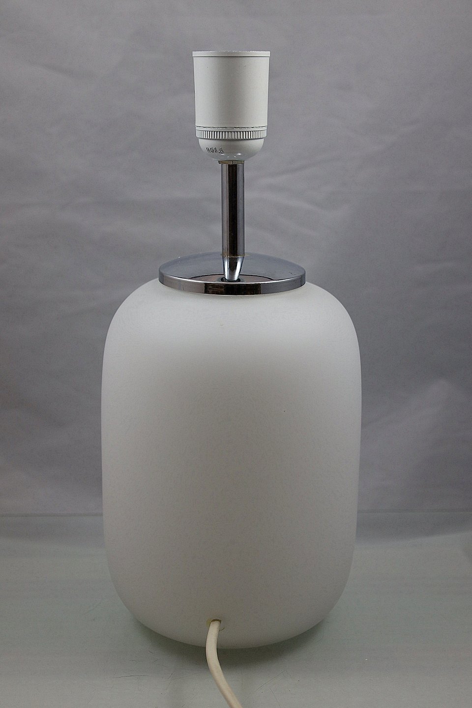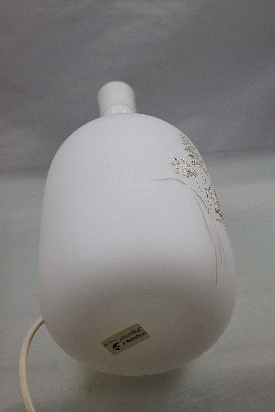 Frimann bordlampe. Dekoreret med spinkel tegning af aks. Lampen er af mat opalglas
