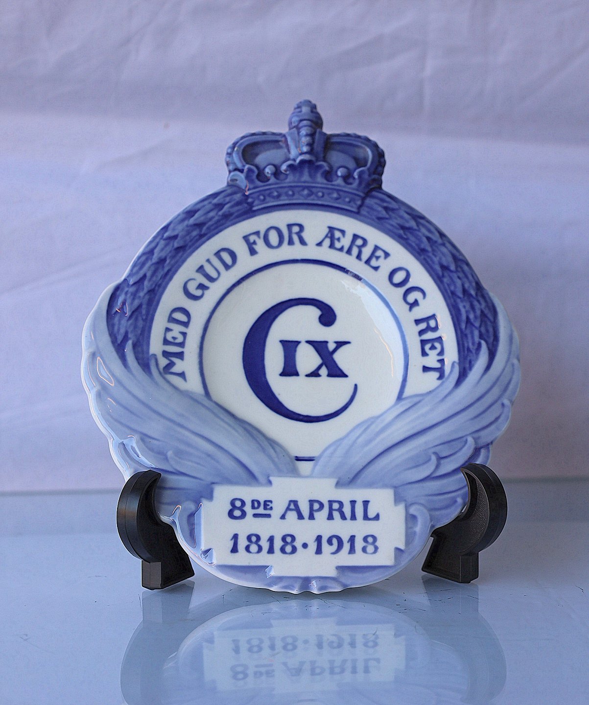 Mindeplatter1818-1918. Platterne er udgivet i anledning af Christian den 9. fødsel. Platterne er dekoreret med krone og bladværk. Indskrift på platterne: Med Gud For Ære Og Ret. Christian den 9. 8de April 1818-1918. Platterne er lavet i 3063 eksemplarer