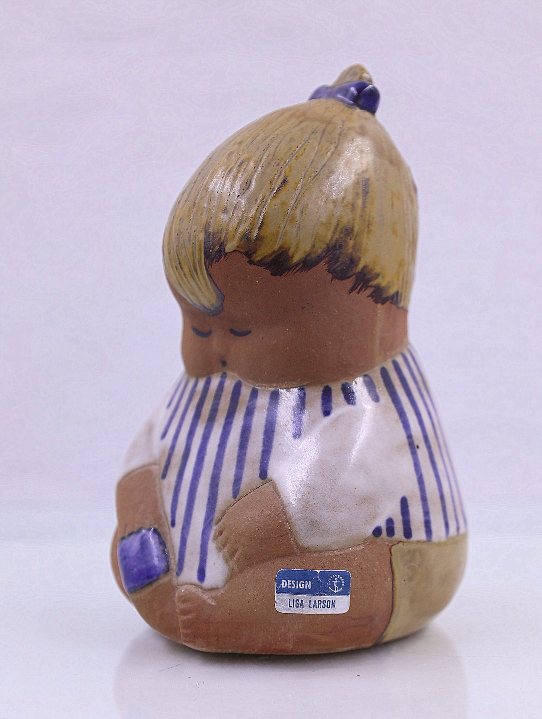Lisa Larson for Gustavsberg. "Johanna" med stribet kjole og håret sat op på hovedet.