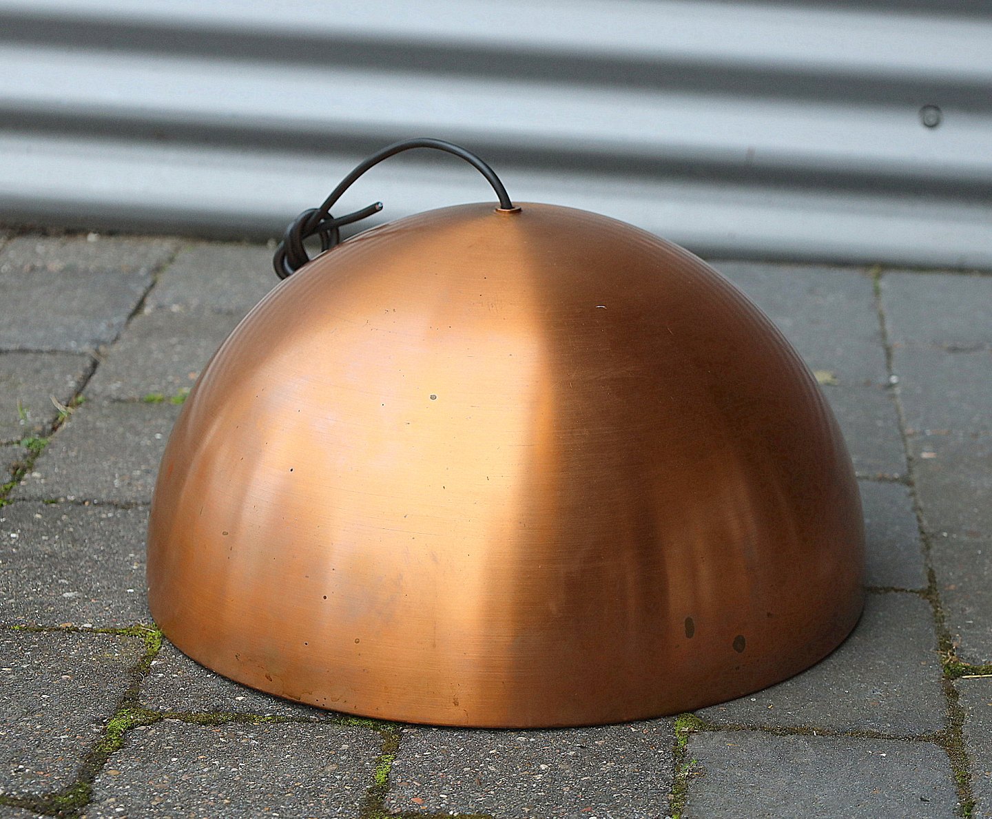 Lampen er udført i kobber. Der er en rist i plast.