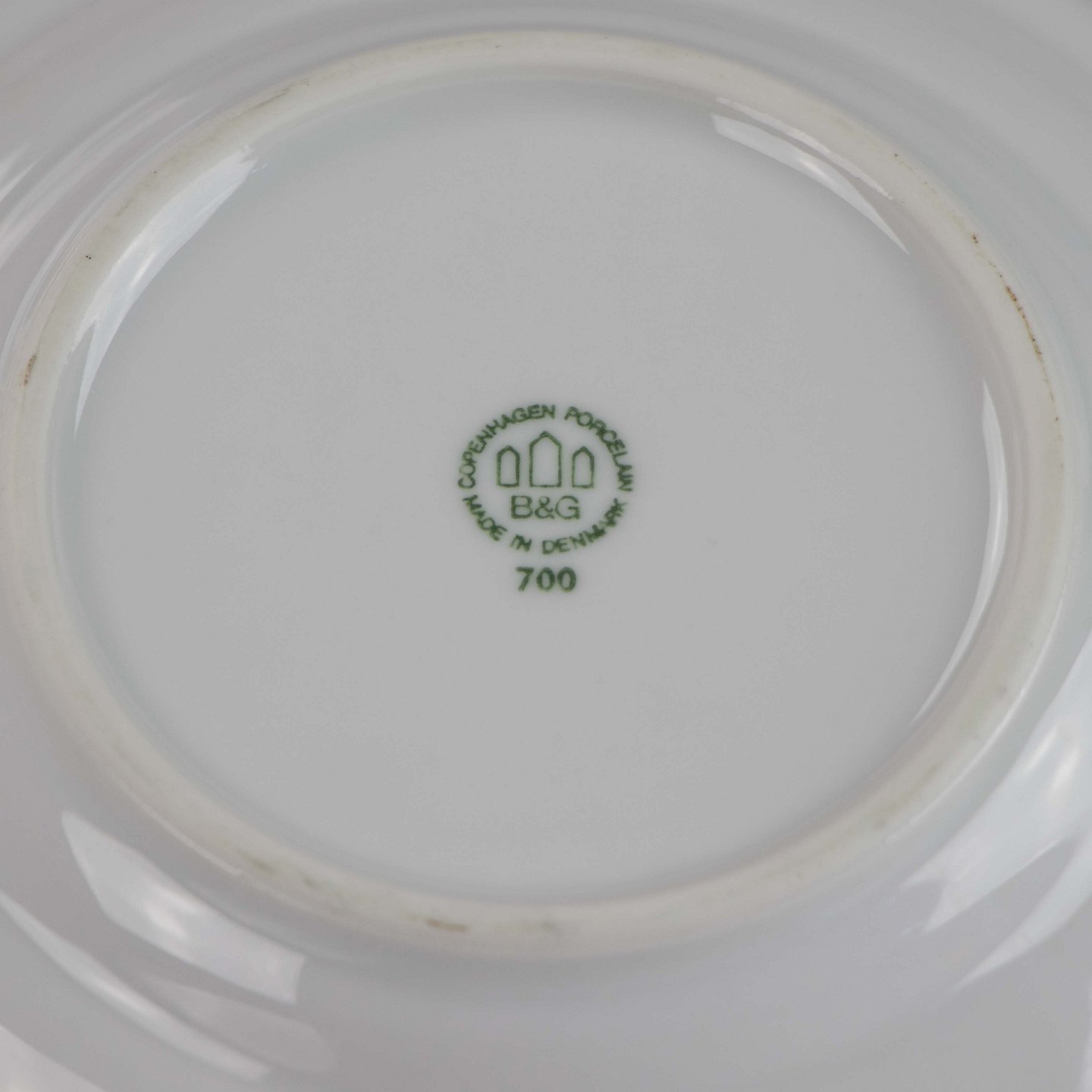 Tallerken fremstillet i hotelporcelæn med skelform i gradueret blå nuancer.