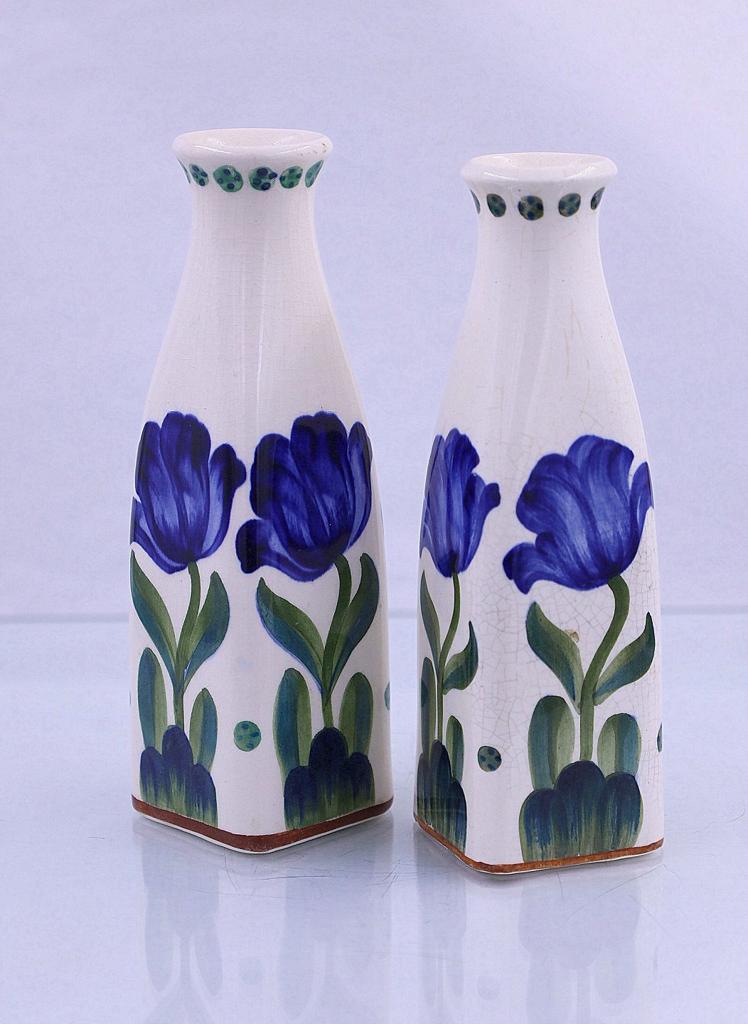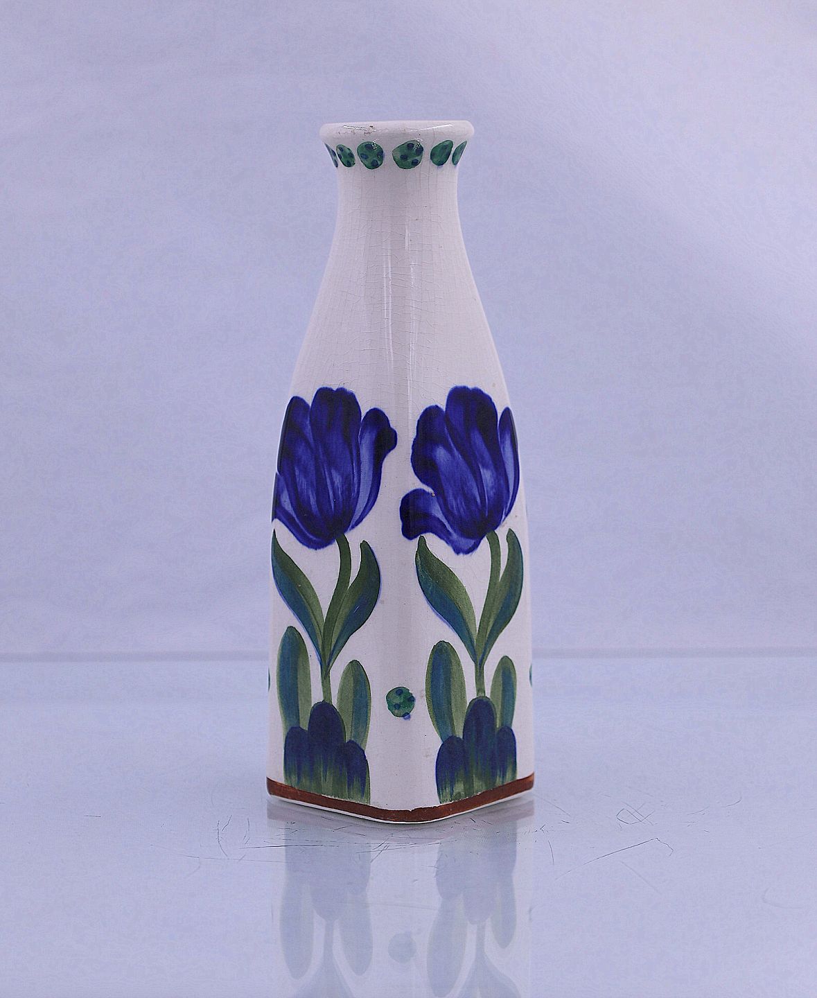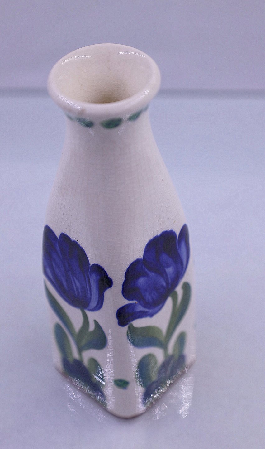 Viol vasen er af fajance og håndmalet