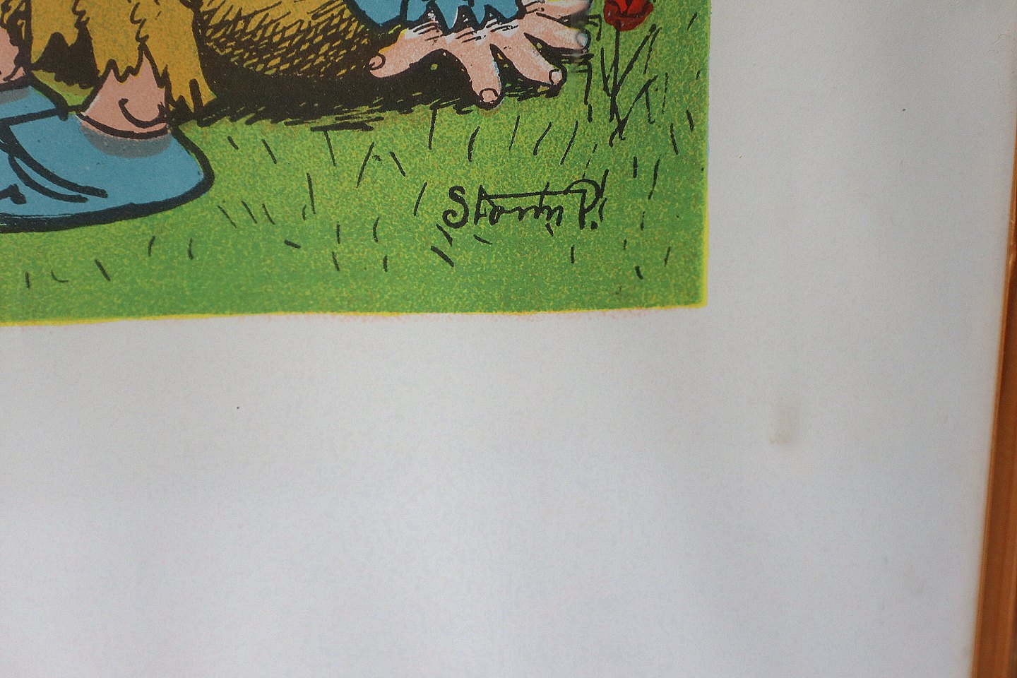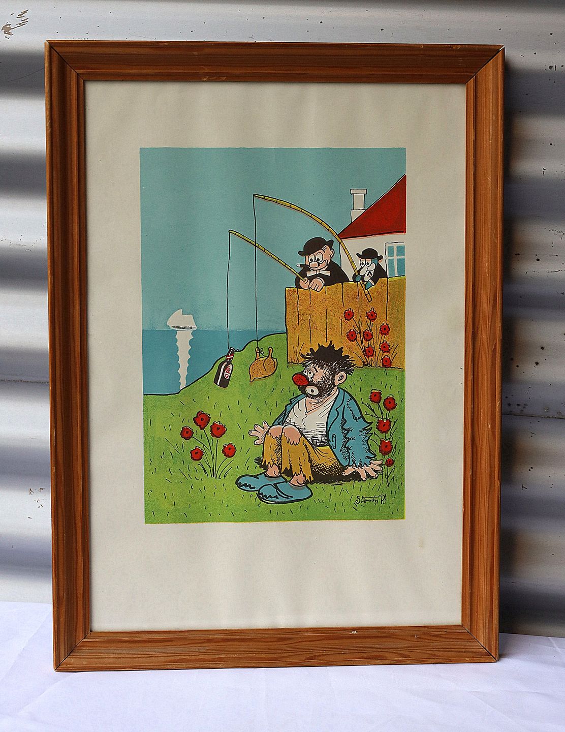 Storm P. indrammet plakat. Peter og Ping på "Vagabond fiskeri".