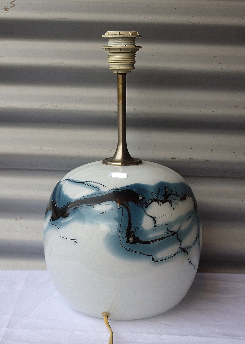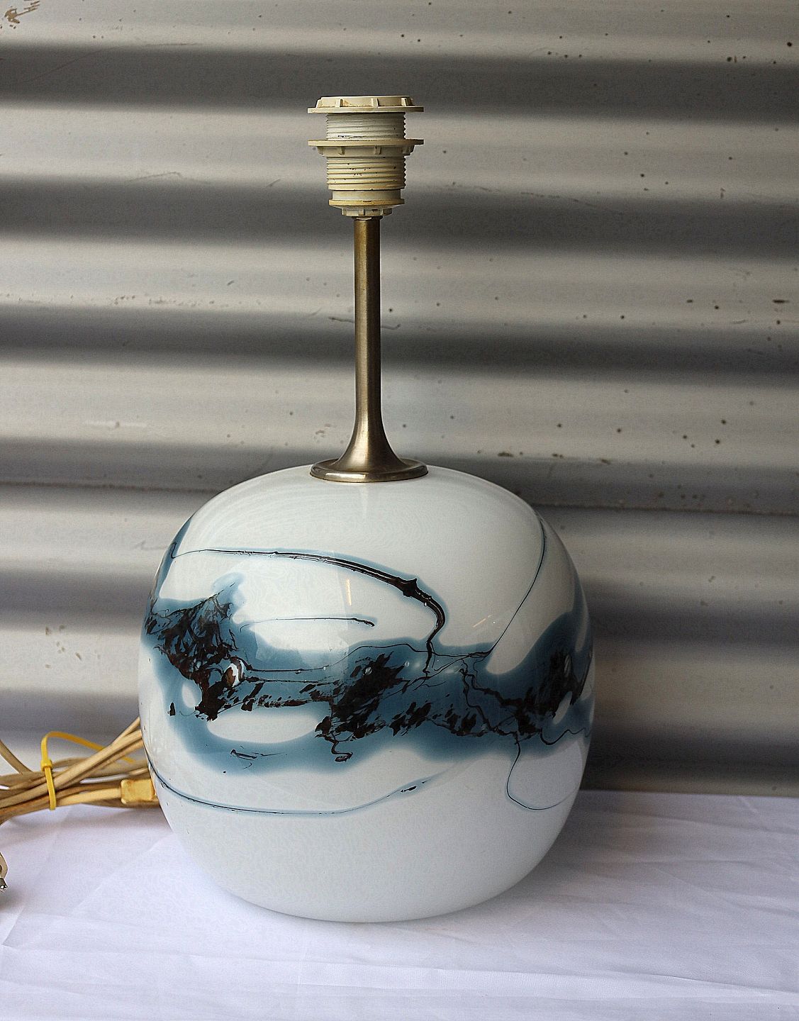 Holmegaard Glasværk. Stor Sakura Bordlampe, kuglerund. Sakura bordlampen er med blå bemaling og produceret på Fyens Glasværk 1980