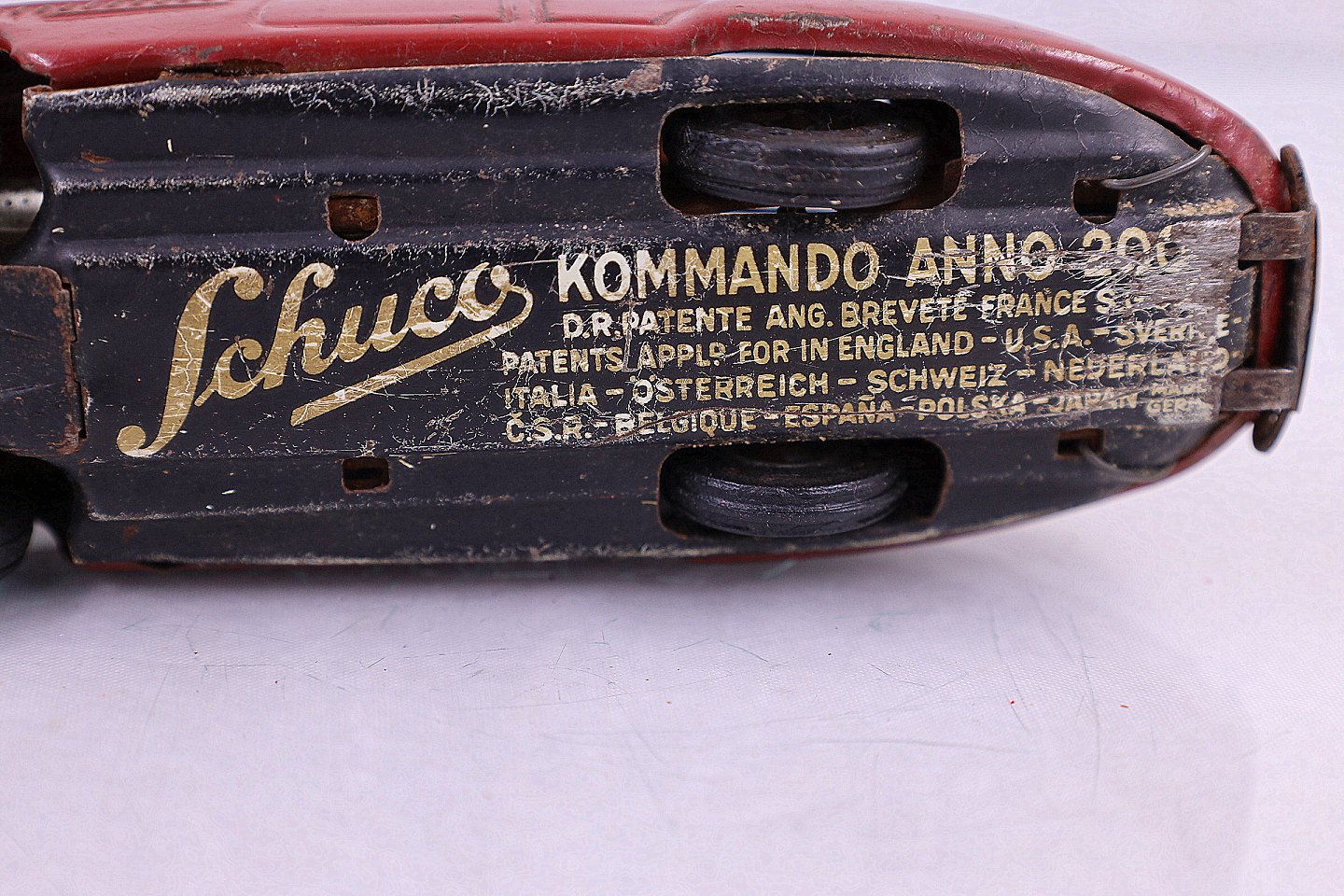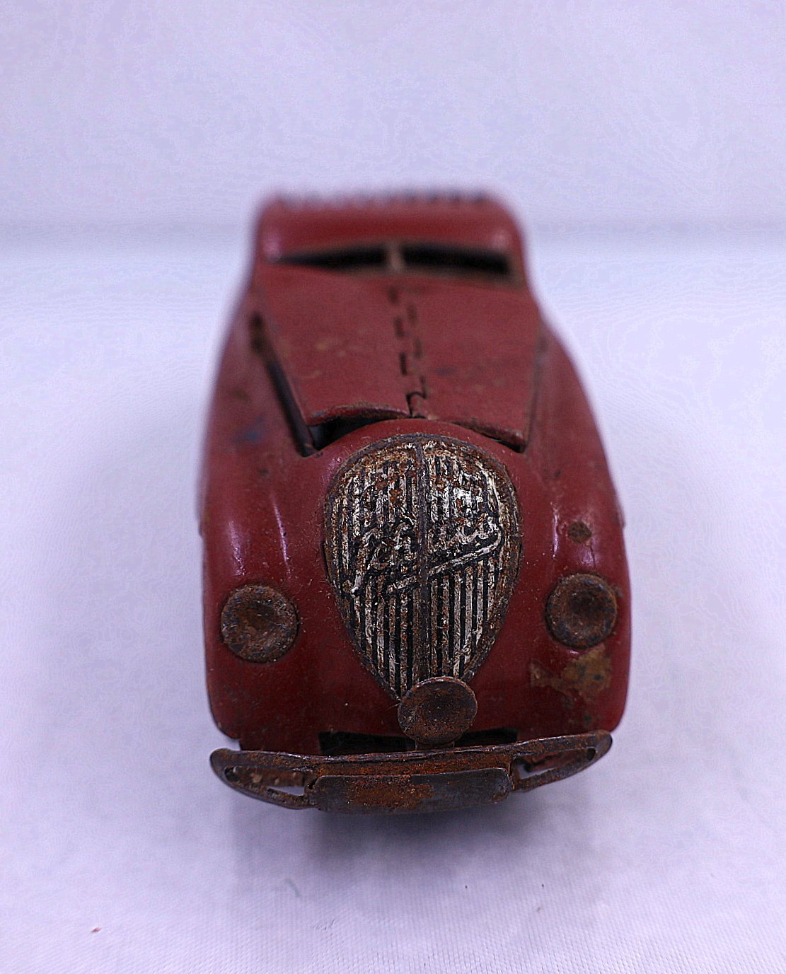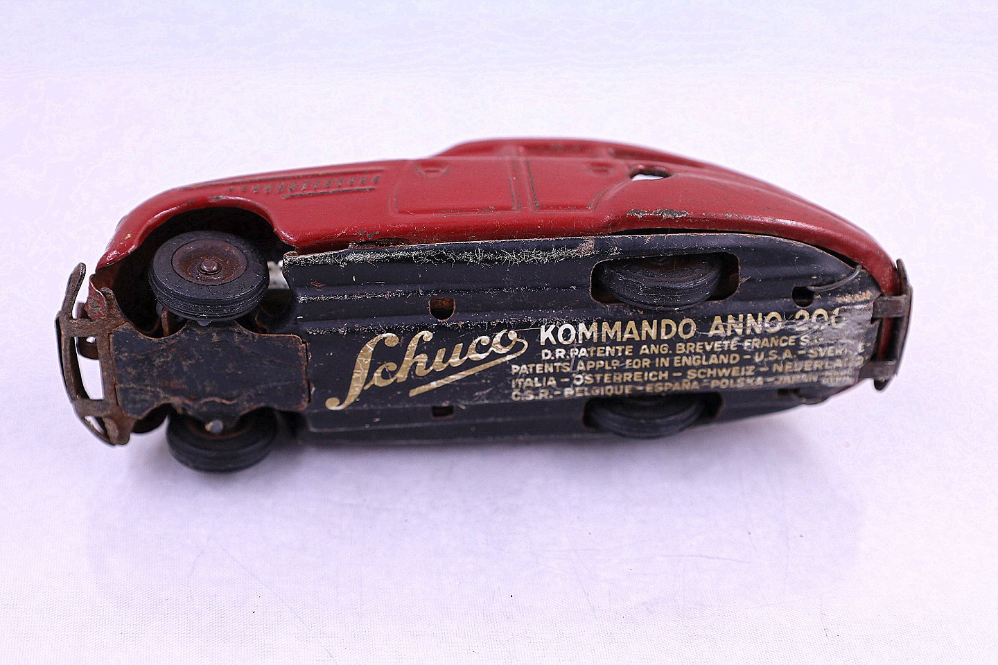 Schuco - Sportsvogn. Schuco Patent, "Magico Auto 2008", Tyskland 1940-1949. Der kan åbnes, i begge sider, til motoren. Sportsvognen er lavet af blik. Bilen er mørk rød, og bærer præg af slitage.