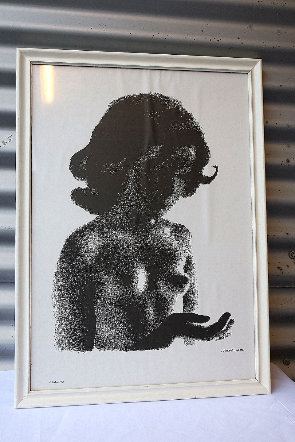 Aage Sikker Hansen (1897-955). Pige med nøgen overkrop og kort hår. Tryk fra Politiken Plus.