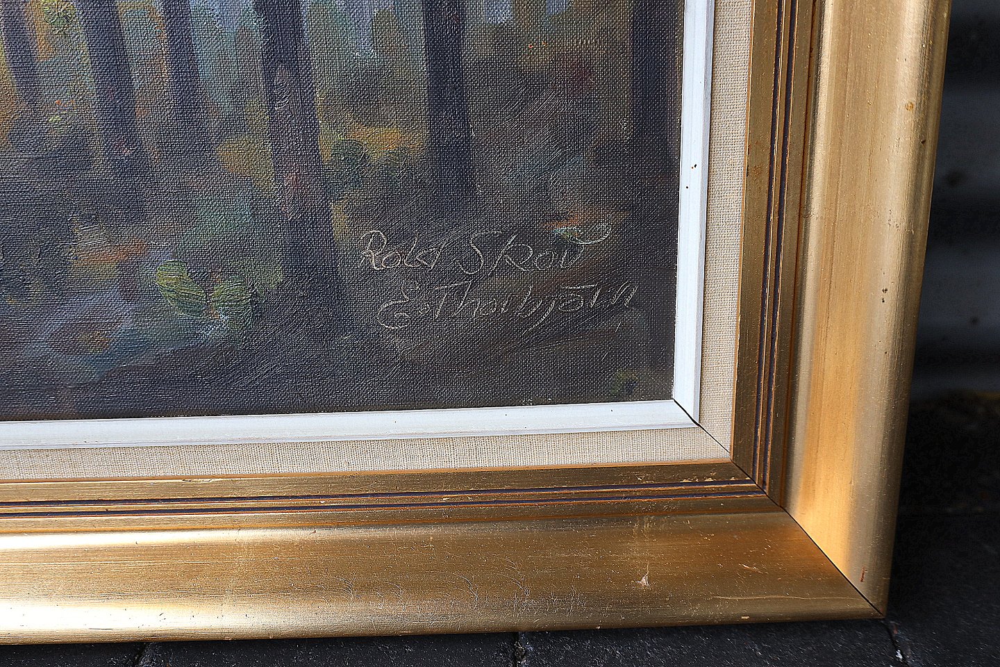 Maleri. Parti af Rold Skov, malet af E. Thorbjørn. Evelyn Thorbjørn, 1911-1990. Signeret E. Thorbjørn. Maleriet er i guldramme, rammen har enkelte brugsspor.