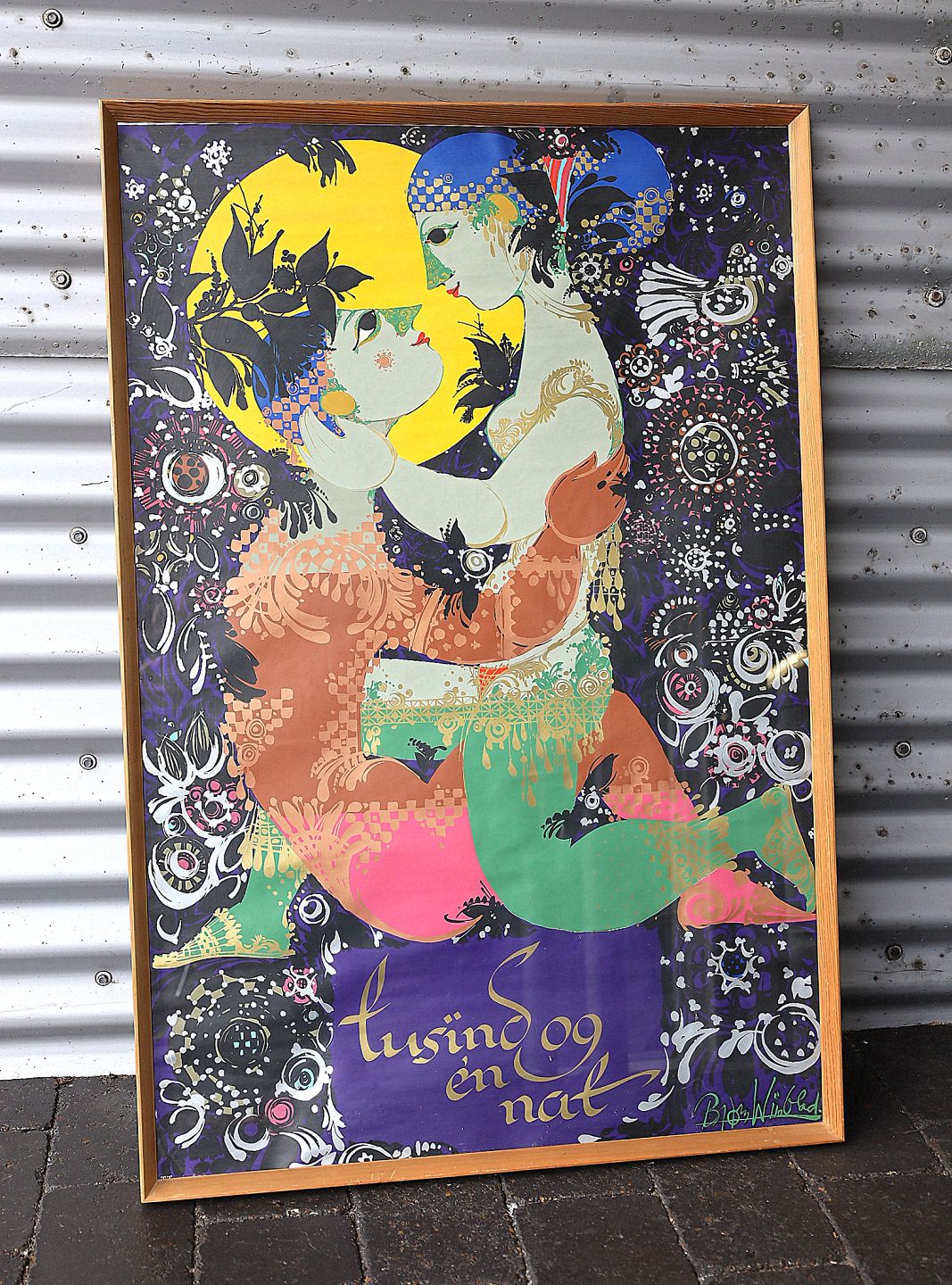 Litografi. Tusind og en nat. Bjørn Wiinblad. Trykt signatur. Rammen er af umalet træ.