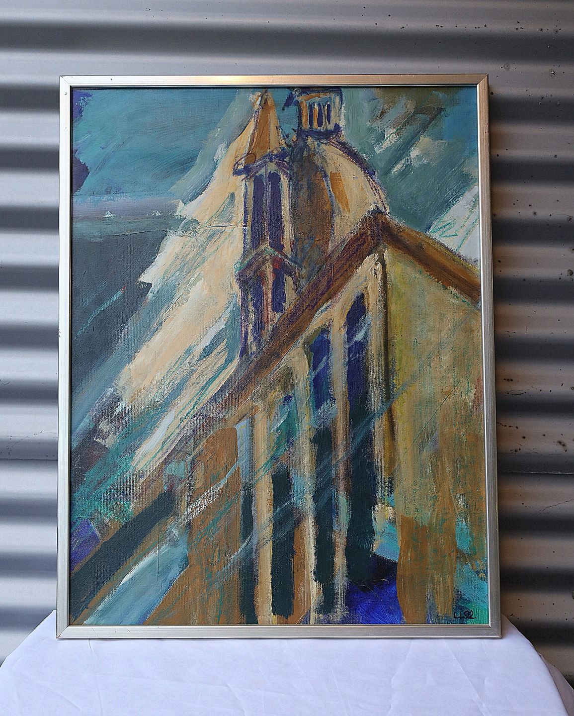 Adelbert Venø maleri Hus i skov 86,5 cm