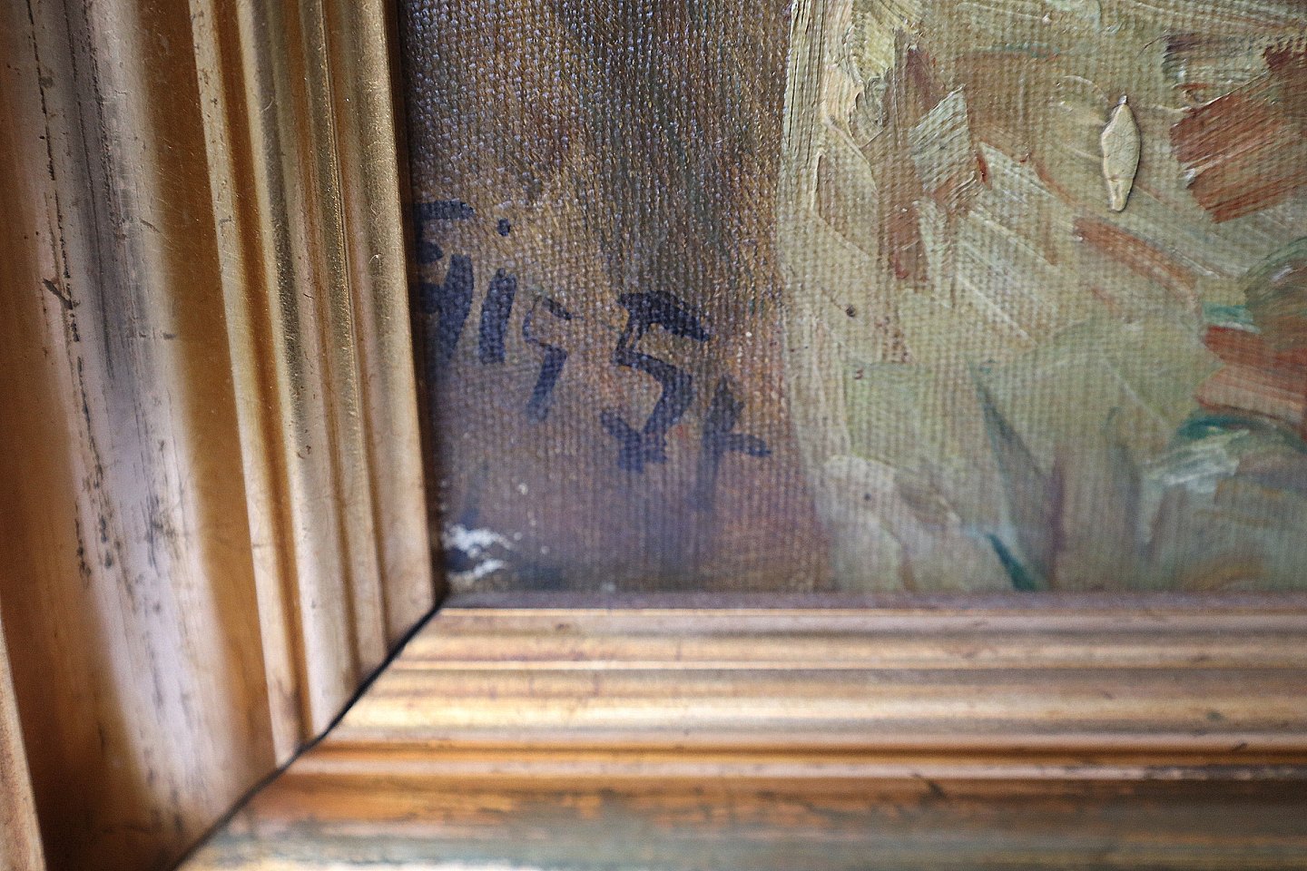 Maleri, Elisabeth Schøitt (1859-1913). Forårsgrene i vase. Signeret Eli S. Maleriet er indrammet i guldramme med lærred, rammen har nogle brugsspor.