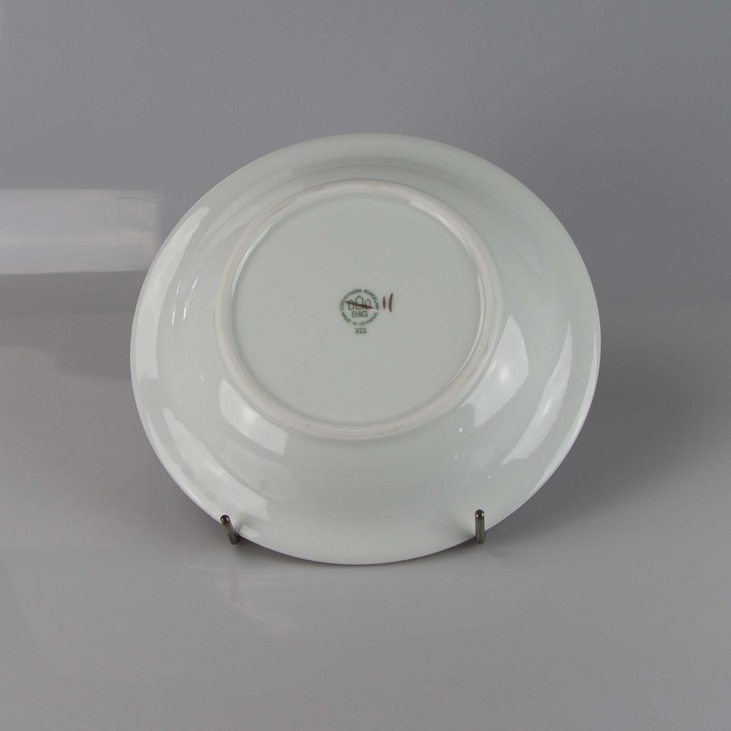 Tallerken fremstillet i porcelæn med stribet motiv i gradueret blå nuancer.