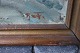 Maleri, Aage Bernhard Frederiksen (1883-1963). Parti af vej, i tøvejr, der ligger et rødt hus ved den ene side af vejen. Signeret B.F.. Maleriet er i en mørk guldramme, der har enkelte brugsspor