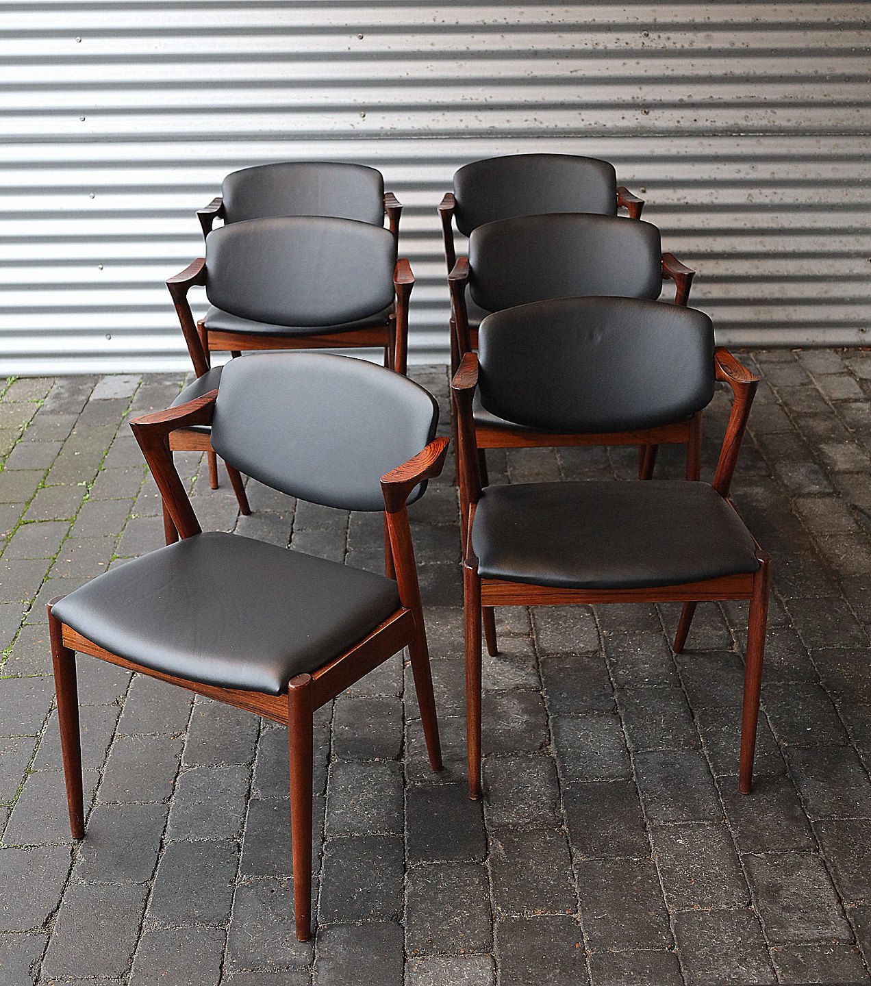 Kai Kristiansen stole model 42 i meget flot palisander og nybetrukket med sort læder.
