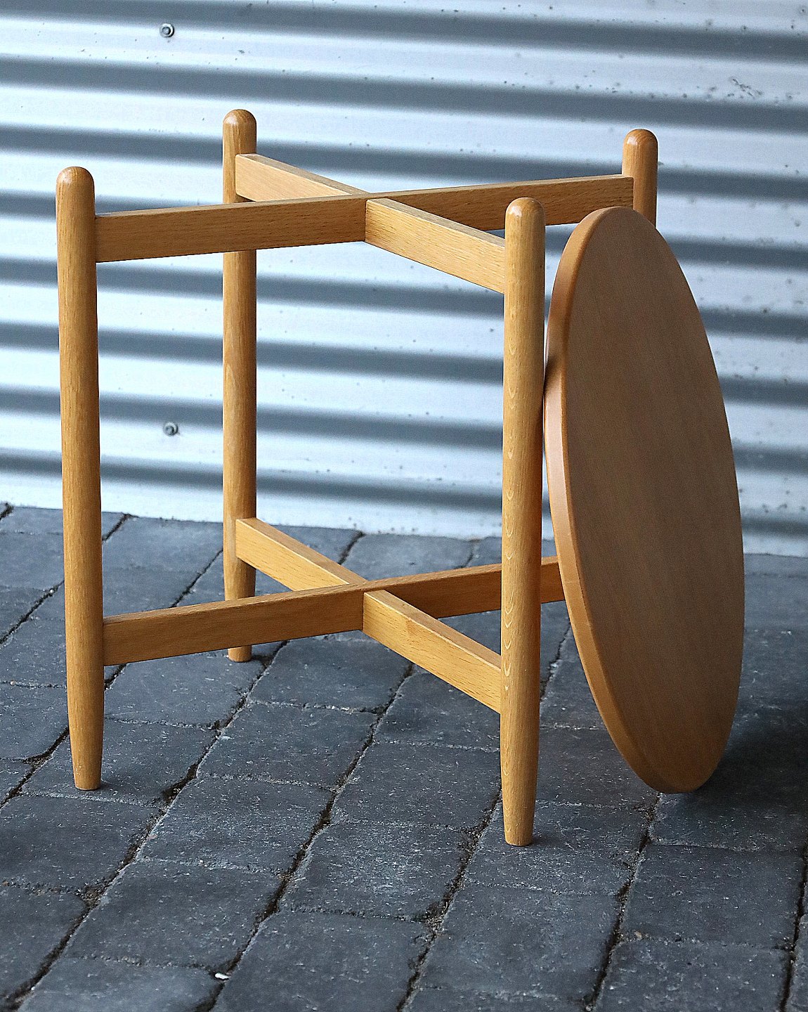 Egetræs bakkebord med 1 bakke. Der er 2 kryds på bordet, bordet kan ikke slås sammen. Bakken er uden kanter
