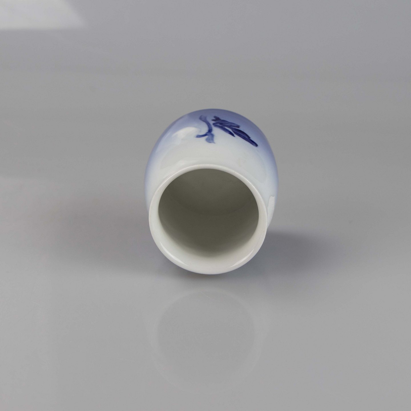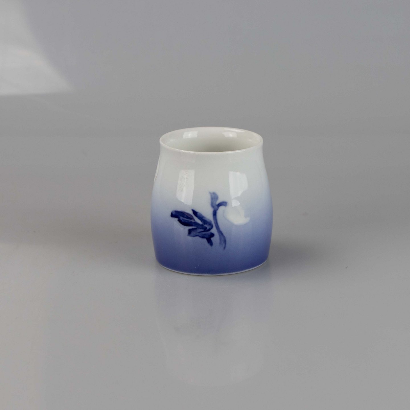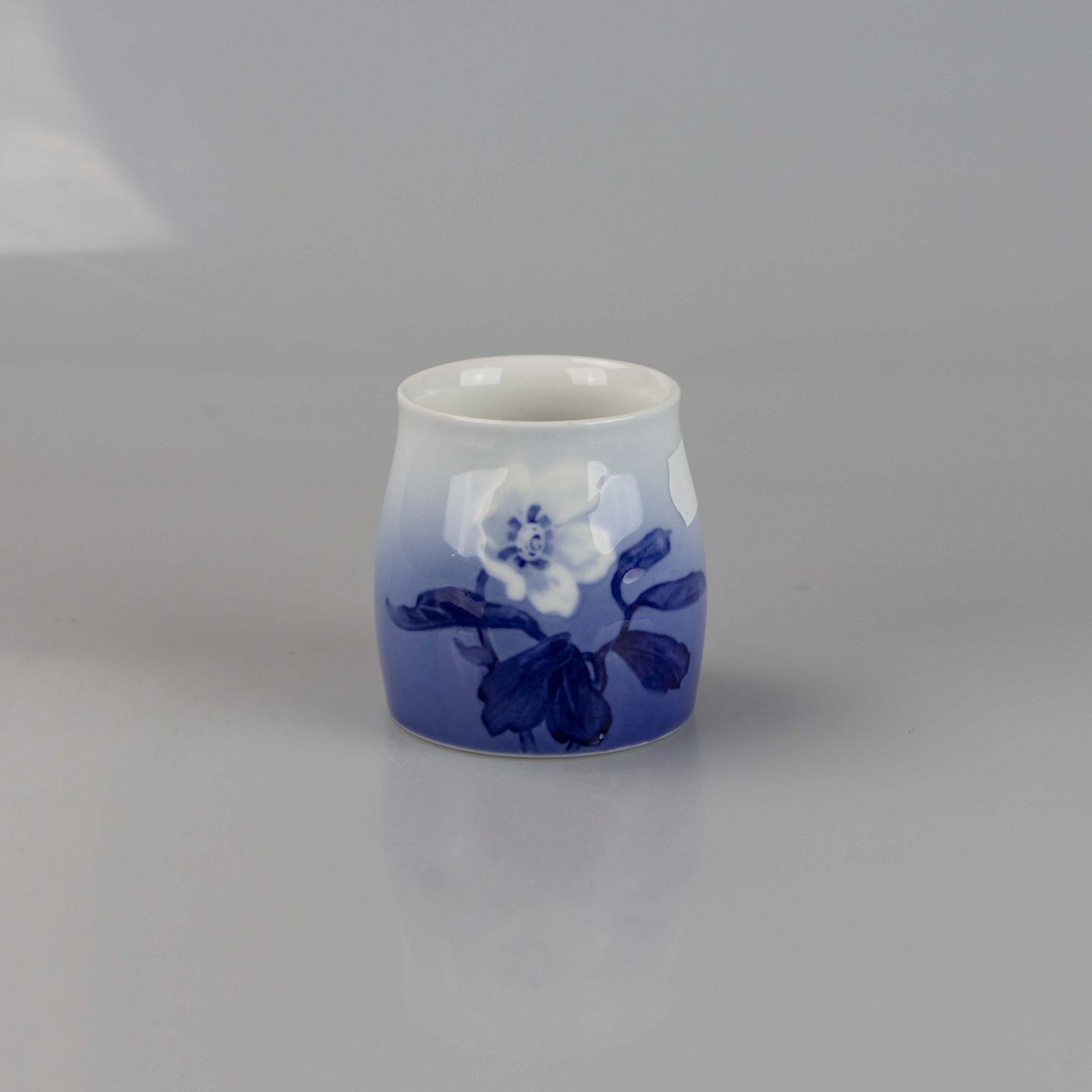Holder i hvidt og gradueret blå porcelæn med motiv af julerose.