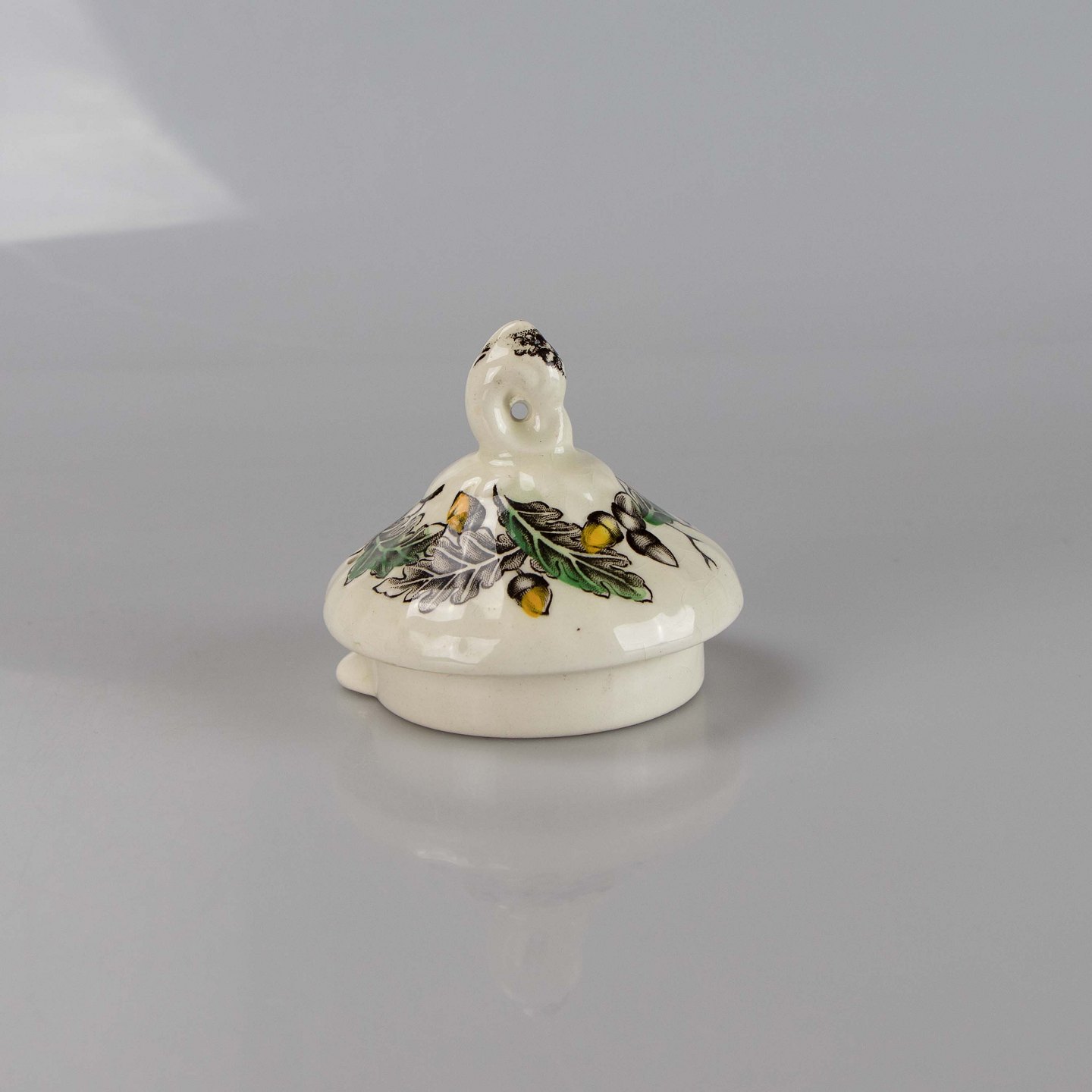 Kande i cremefarvet ironstone med multifarvet motiv af postvogn i landskab.
