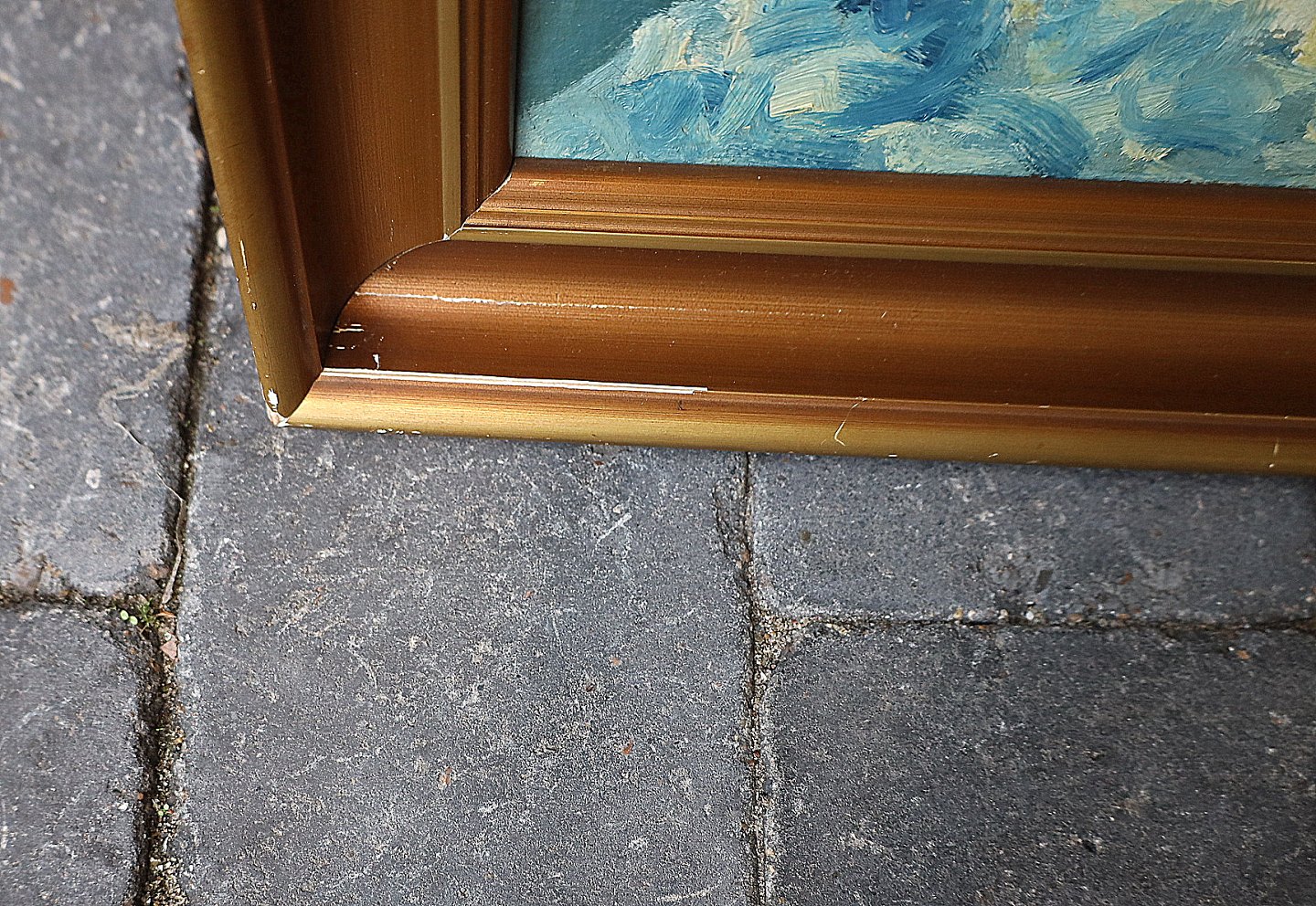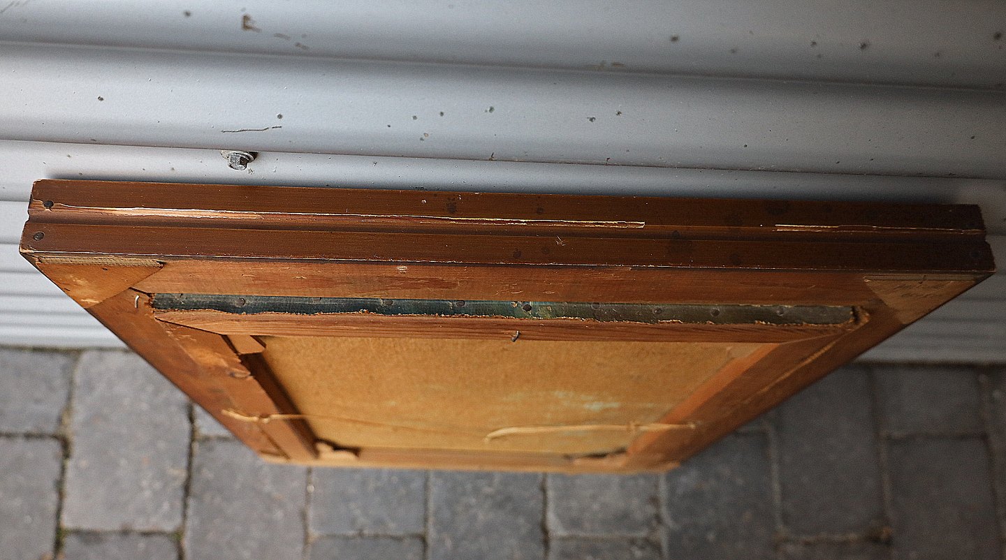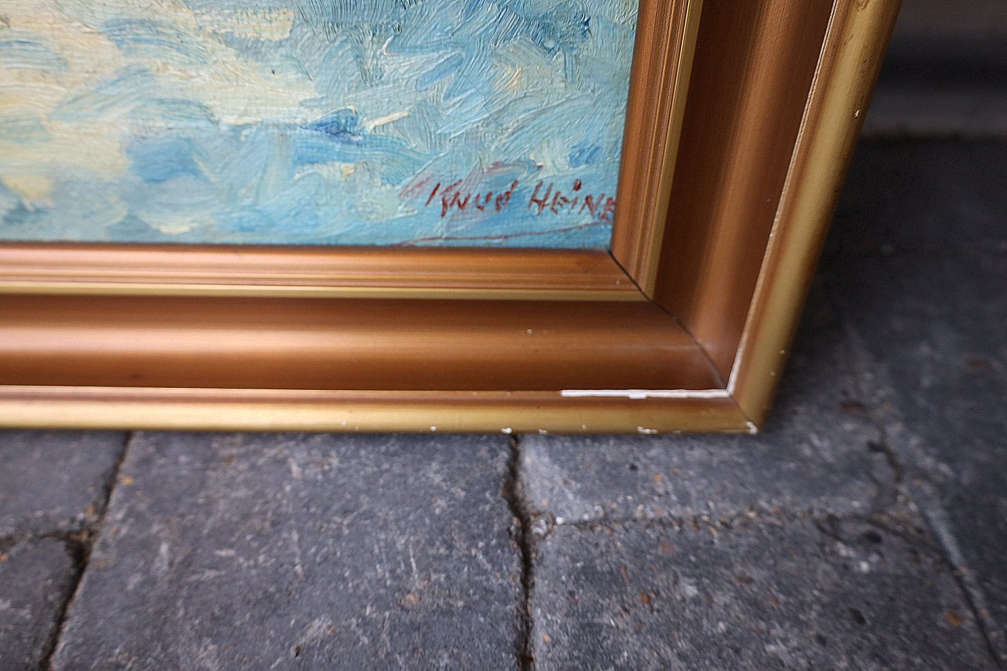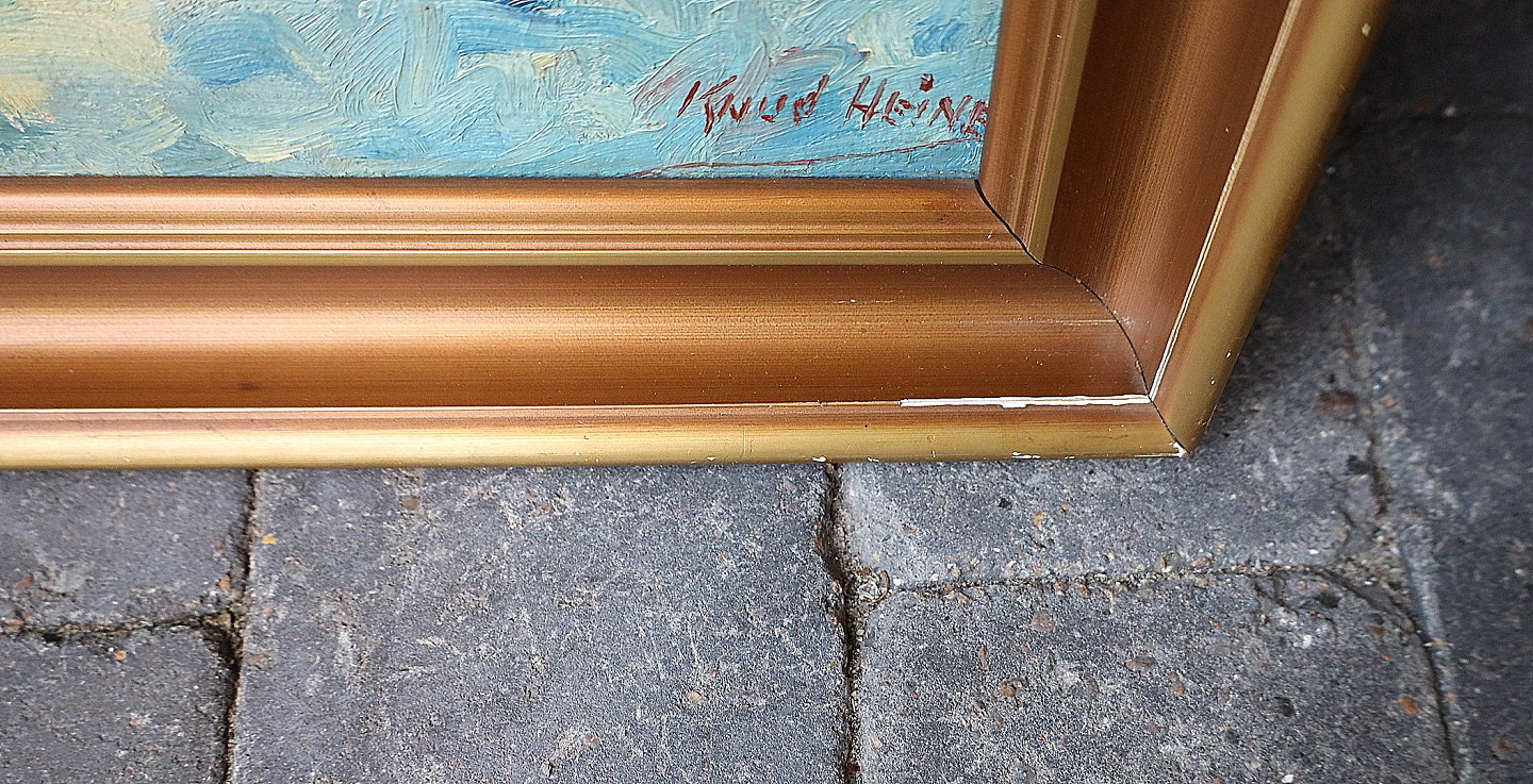Knud Heine. Vinterparti fra Latinergyden, Aalborg. Signeret Knud Heine. Rammen er bronzefarvet og med små brugsspor