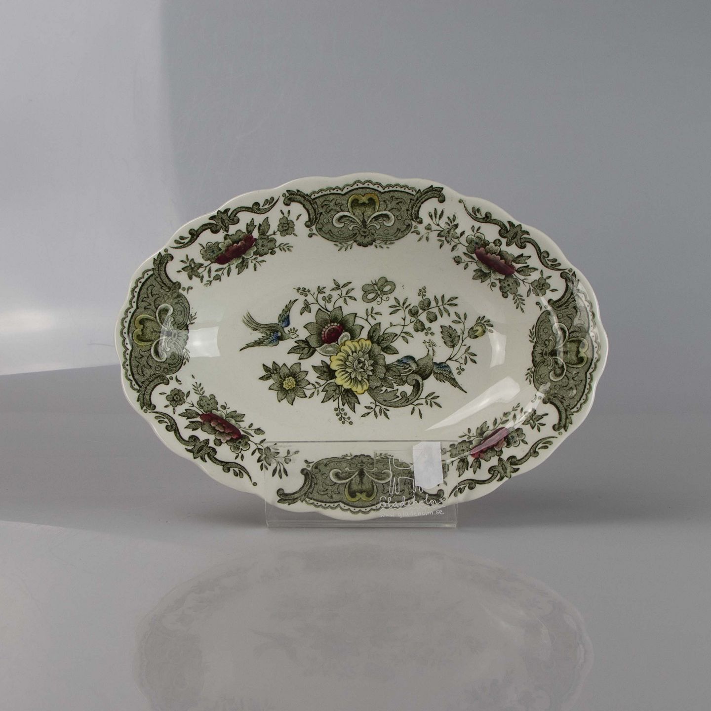 Lille ovalt fad i engelsk fajance fra stellet Green Windsor