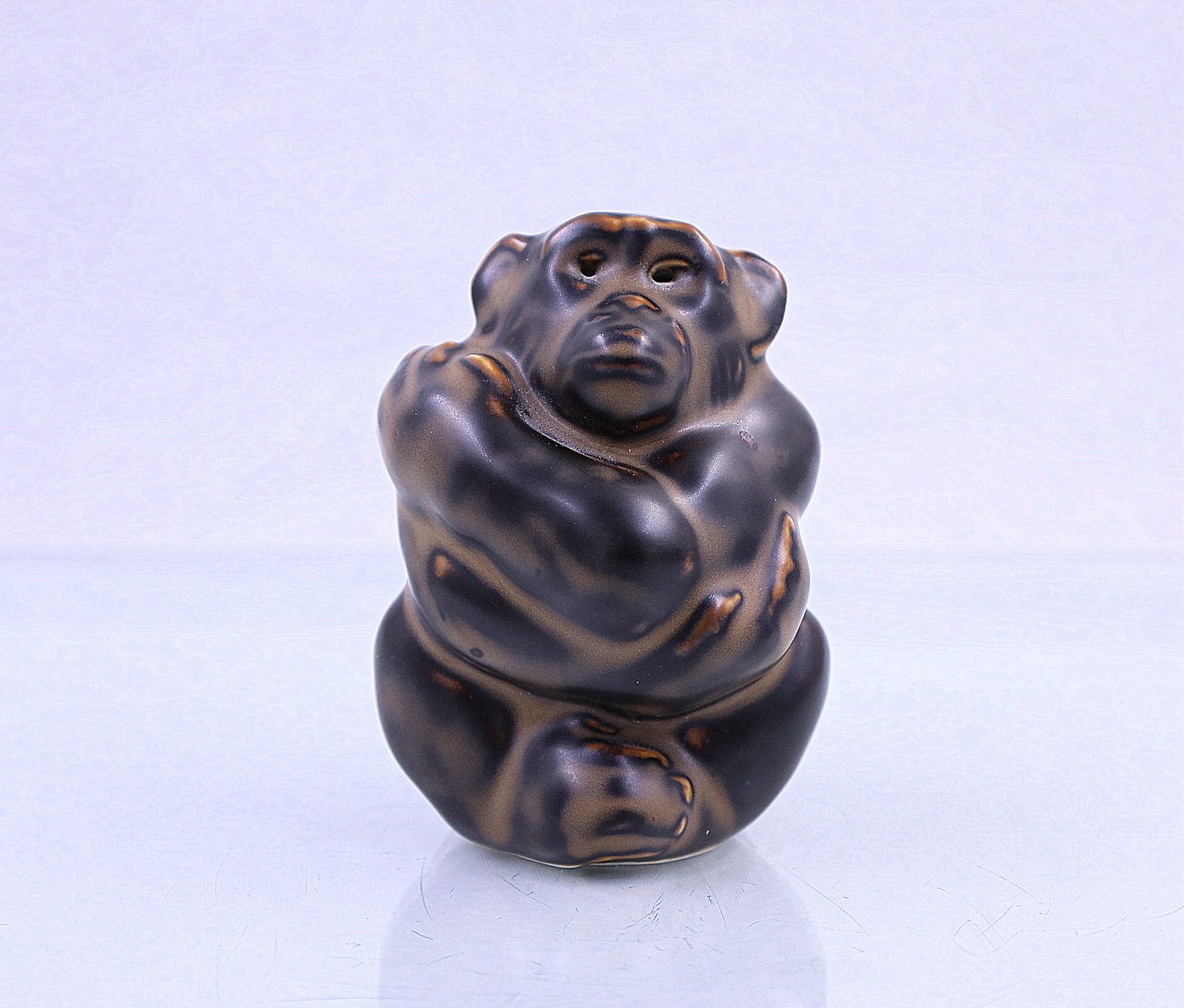 Royal Copenhagen. Siddende stentøjschimpanse nr. 20188. Chimpansen er brun glaseret.