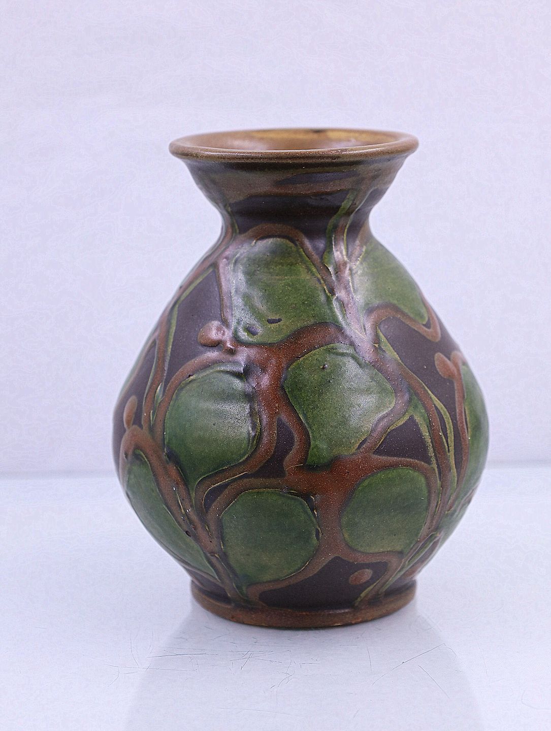 HAK = Herman A. Kähler Vase i glaseret keramik. Glasur i grønne og sorte nuancer. Fremstillet 1930/40'erne.
