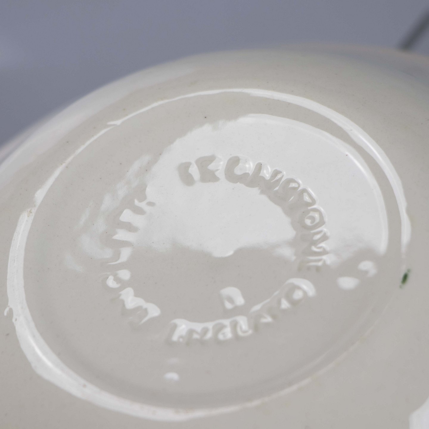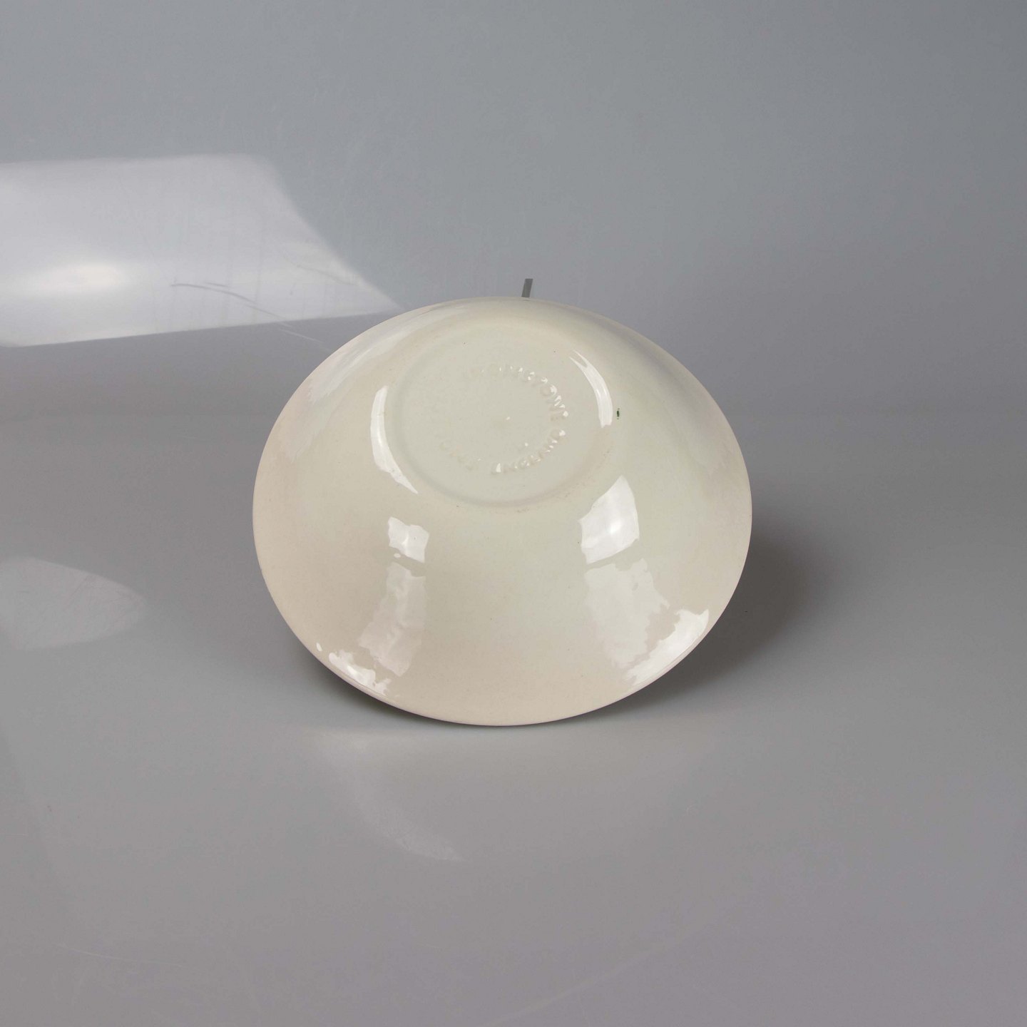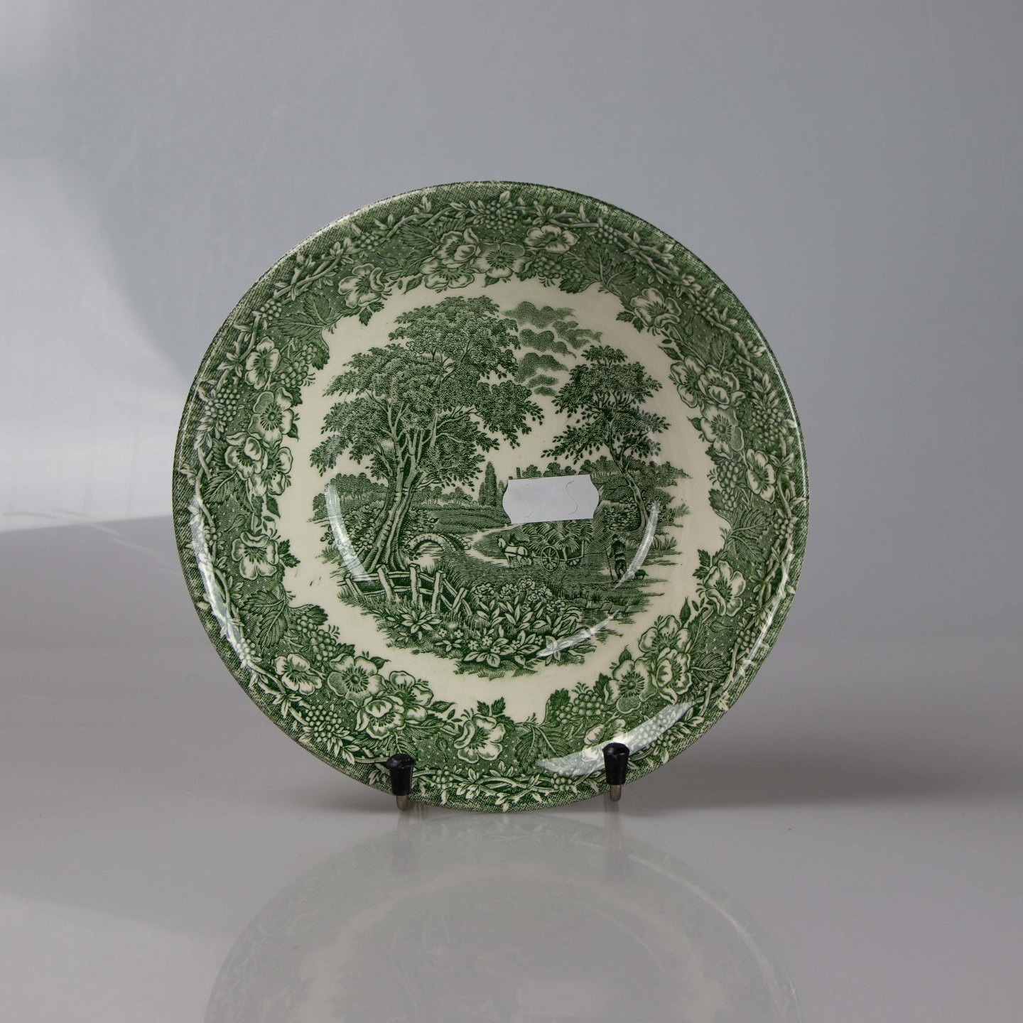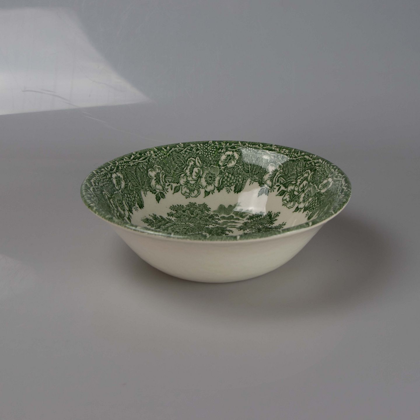 Skål i lyst jernporcelæn med landskabsmotiv i grøn nuance