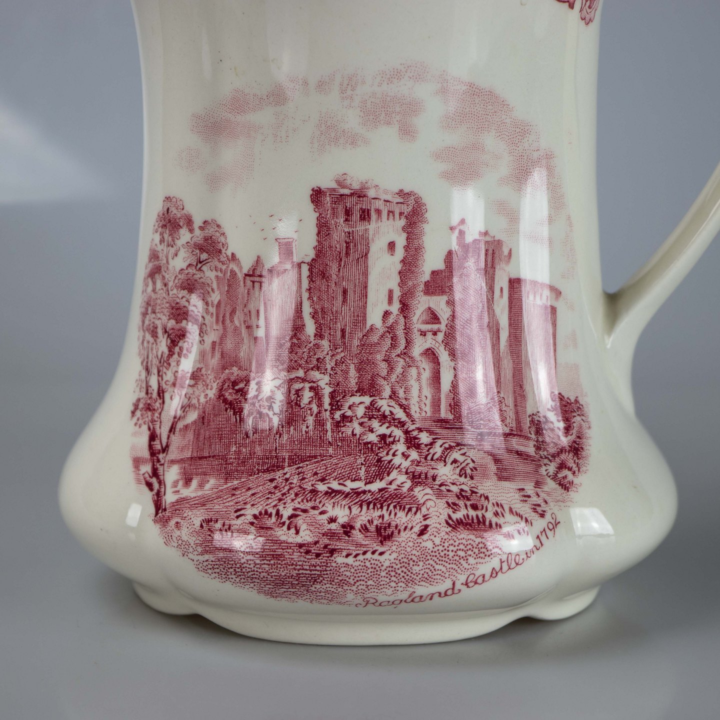 Kande i lys fajance med røddekoreret slotsmotiv.