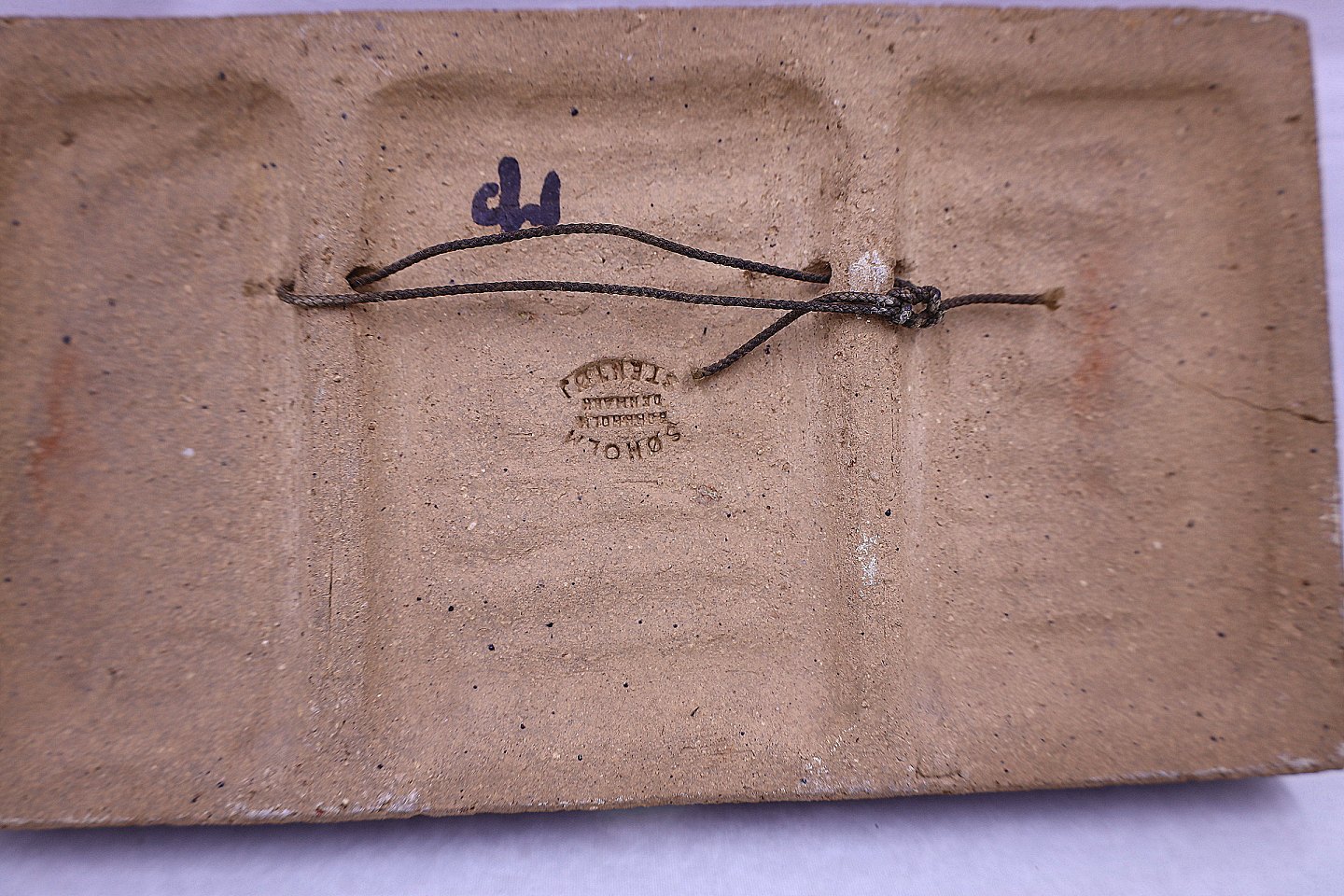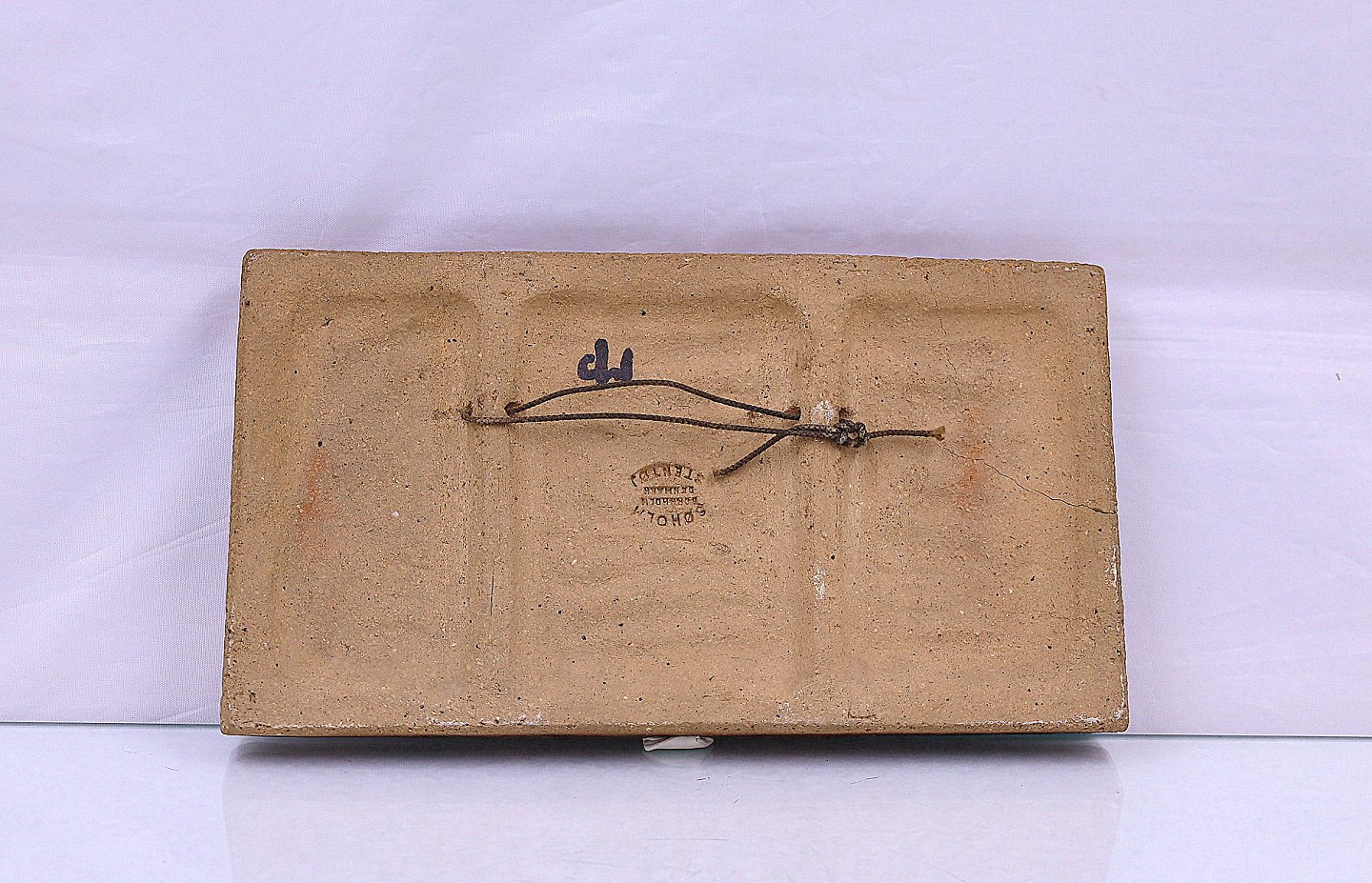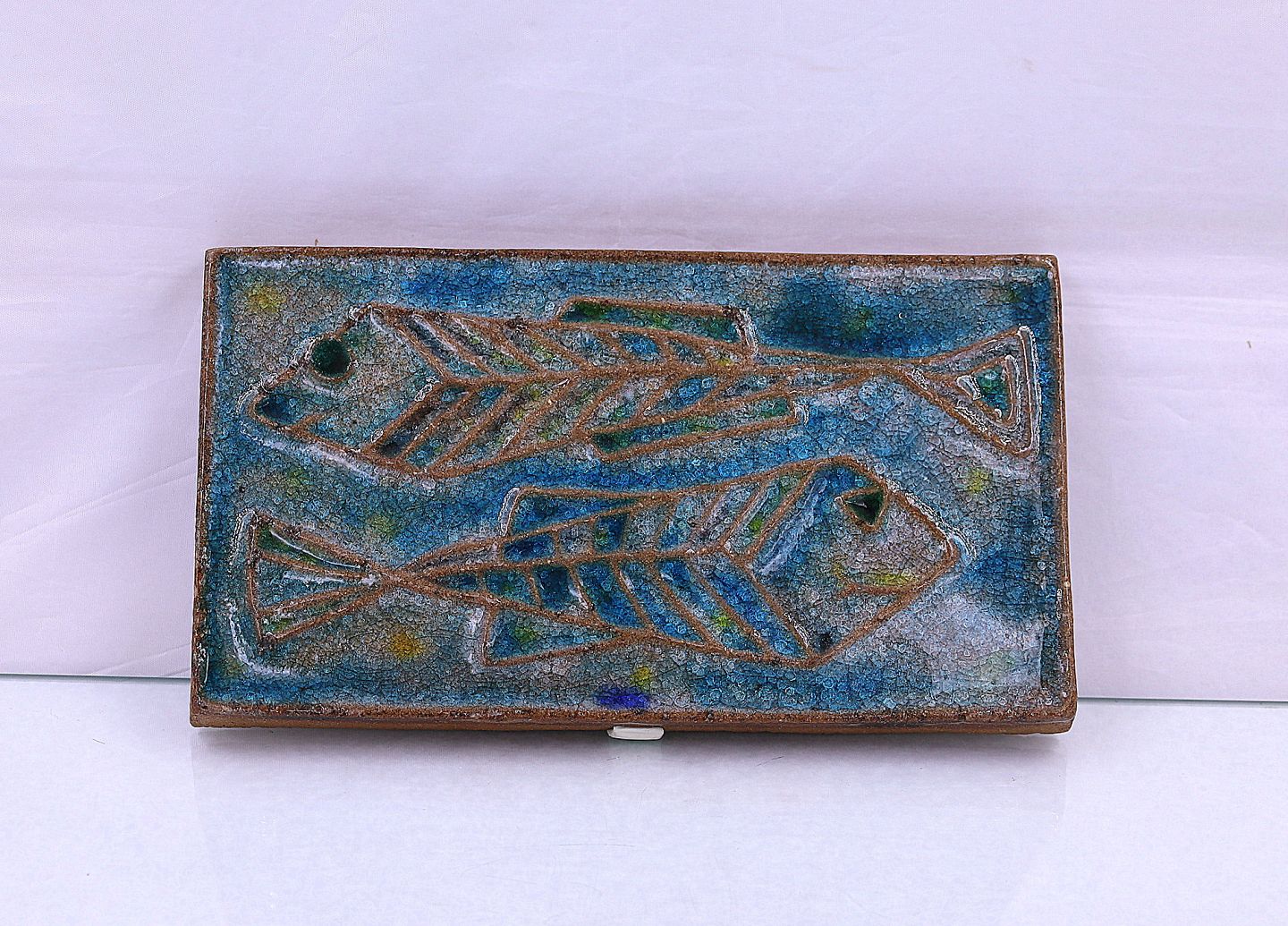 Søholm relief. Relieffet er aflangt, og glaseret blåt. Motivet er 2 fisk der svømmer hver sin vej.