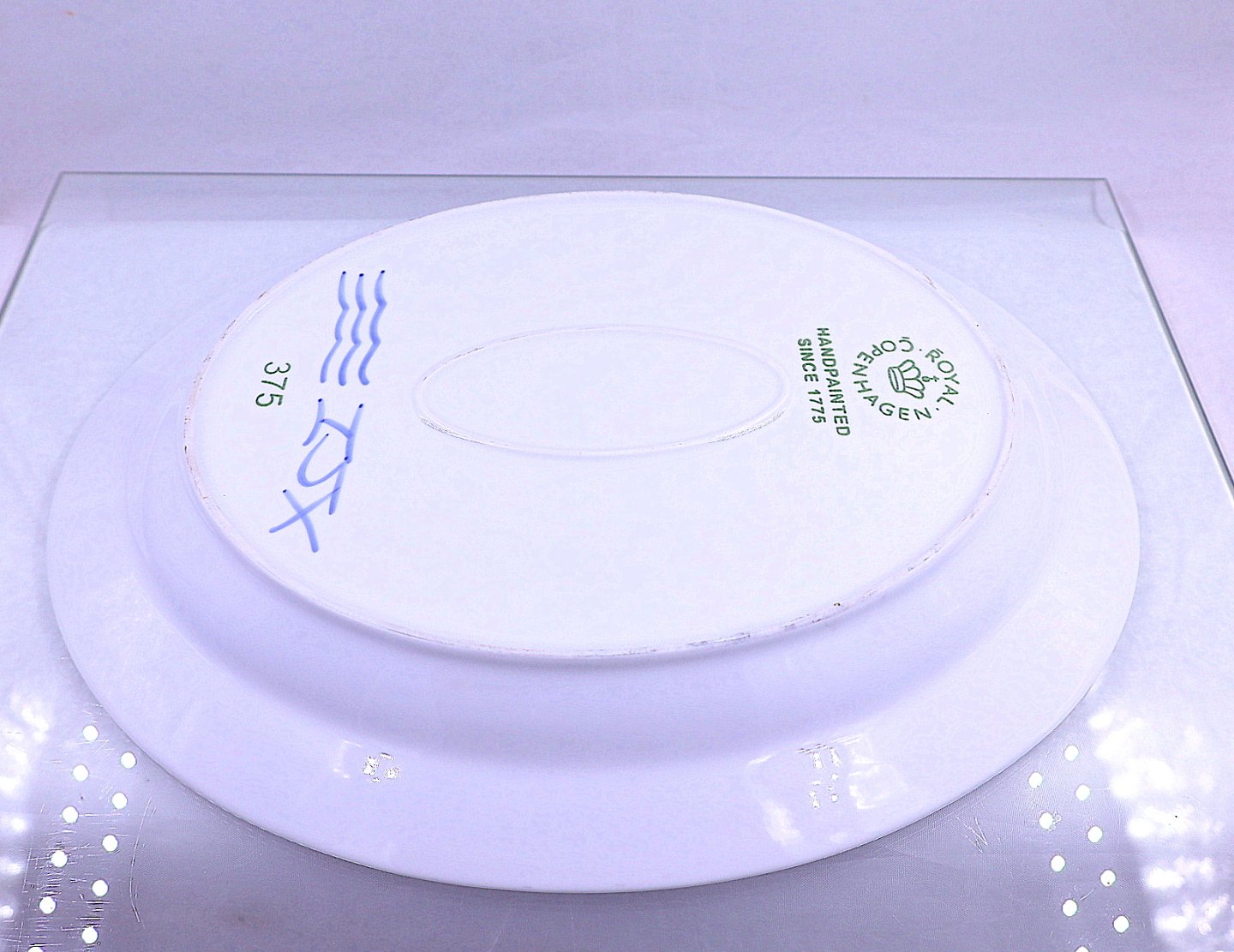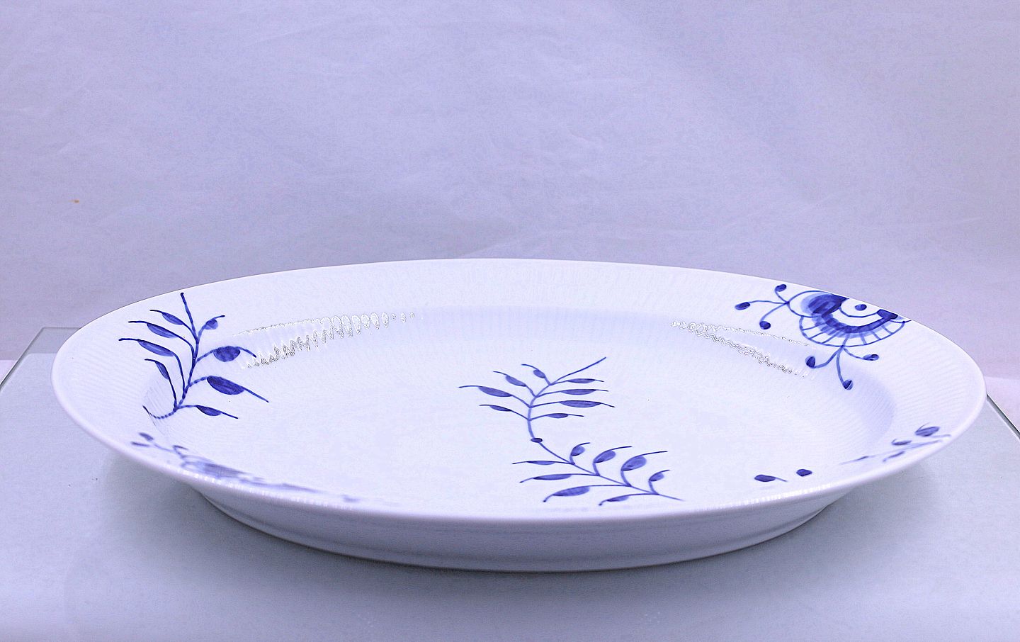 Royal Copenhagen. Mega musselmalet ovalt serveringsfad nr. 375. Mega musselmalet er i de klassiske hvide og blå farver. Blåt mega riflet