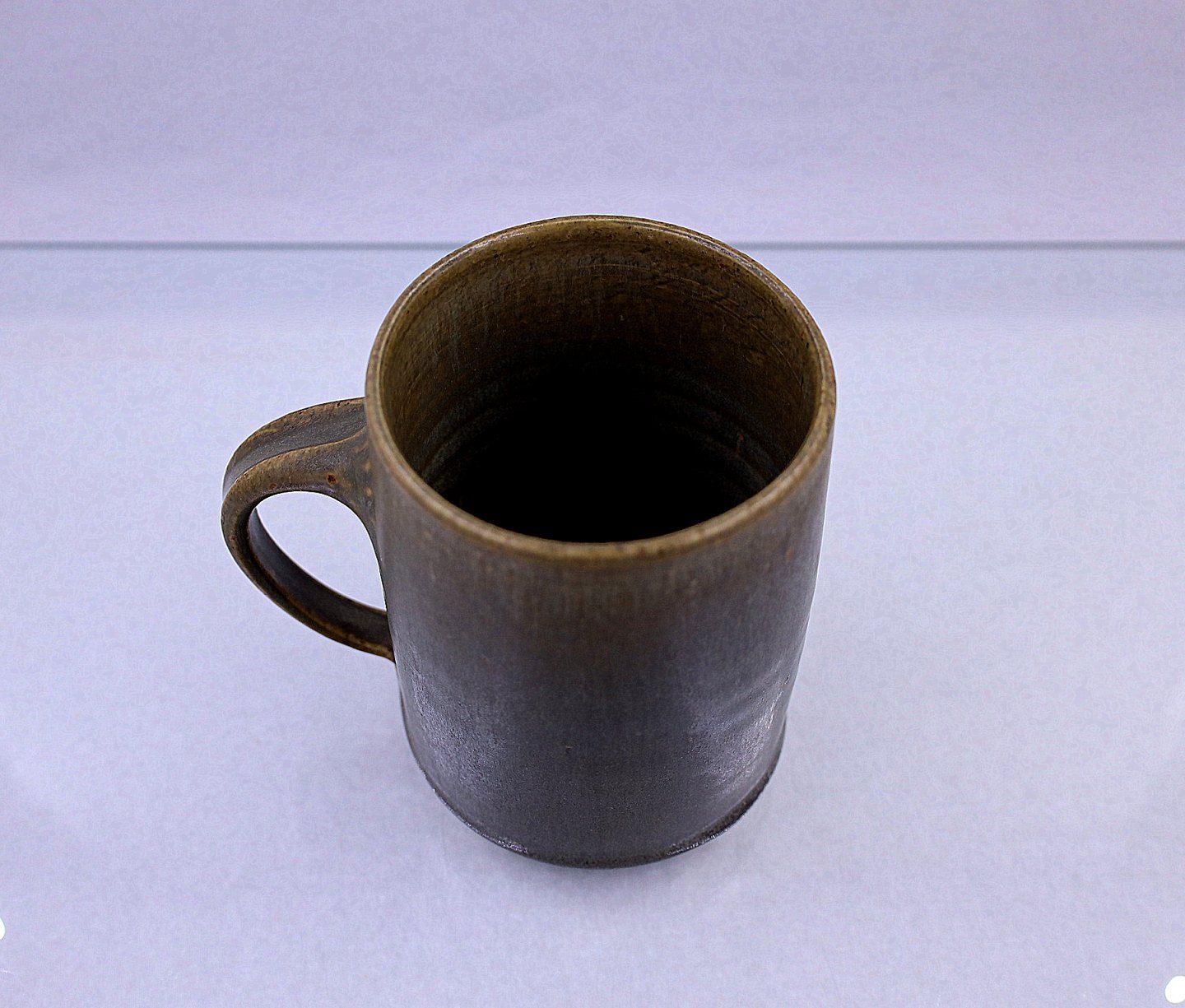 AIP, Stadsing. Mørkebrunt keramik krus med hank.