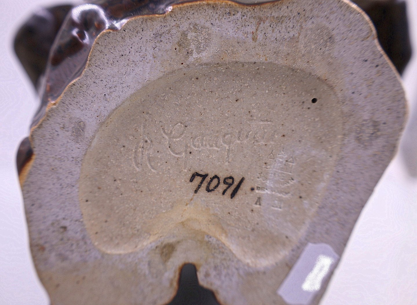 Bing & Grøndahl. Stentøjs figur af chimpanse, nr. 7091, Jean Renè Gauguin. Dansk stentøj, figuren er blank glaseret med sung glasur.