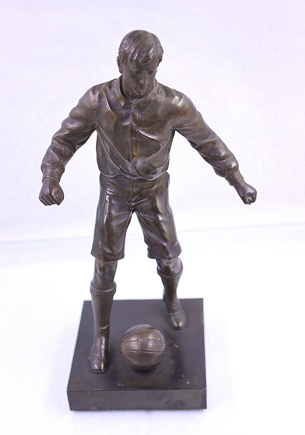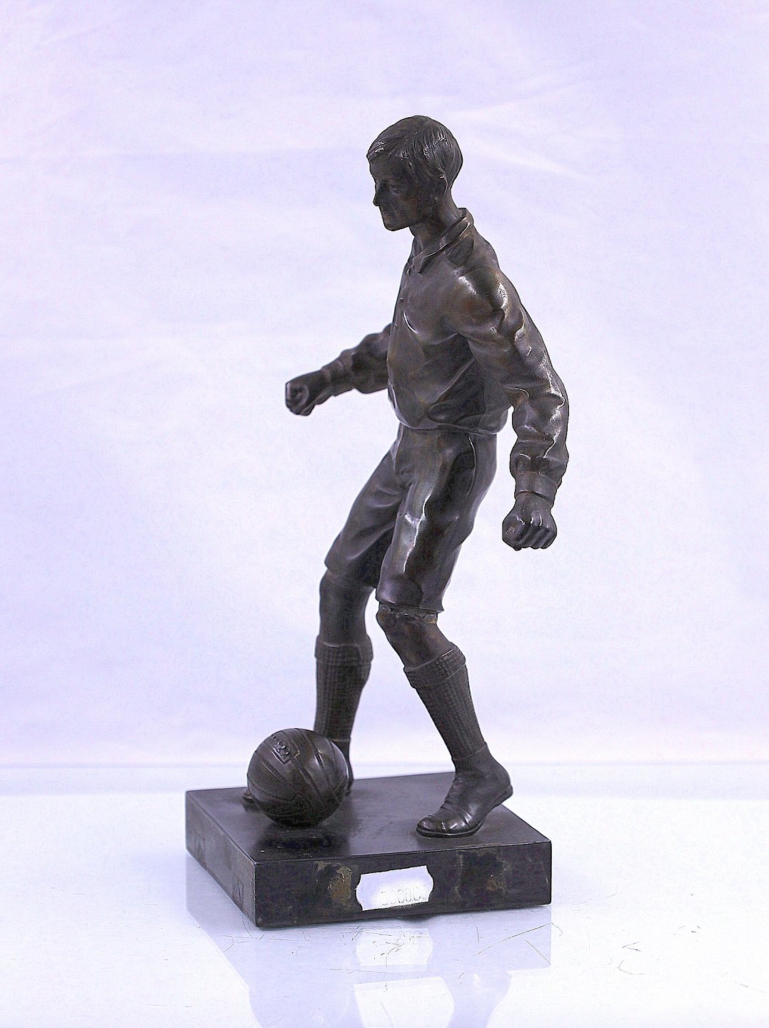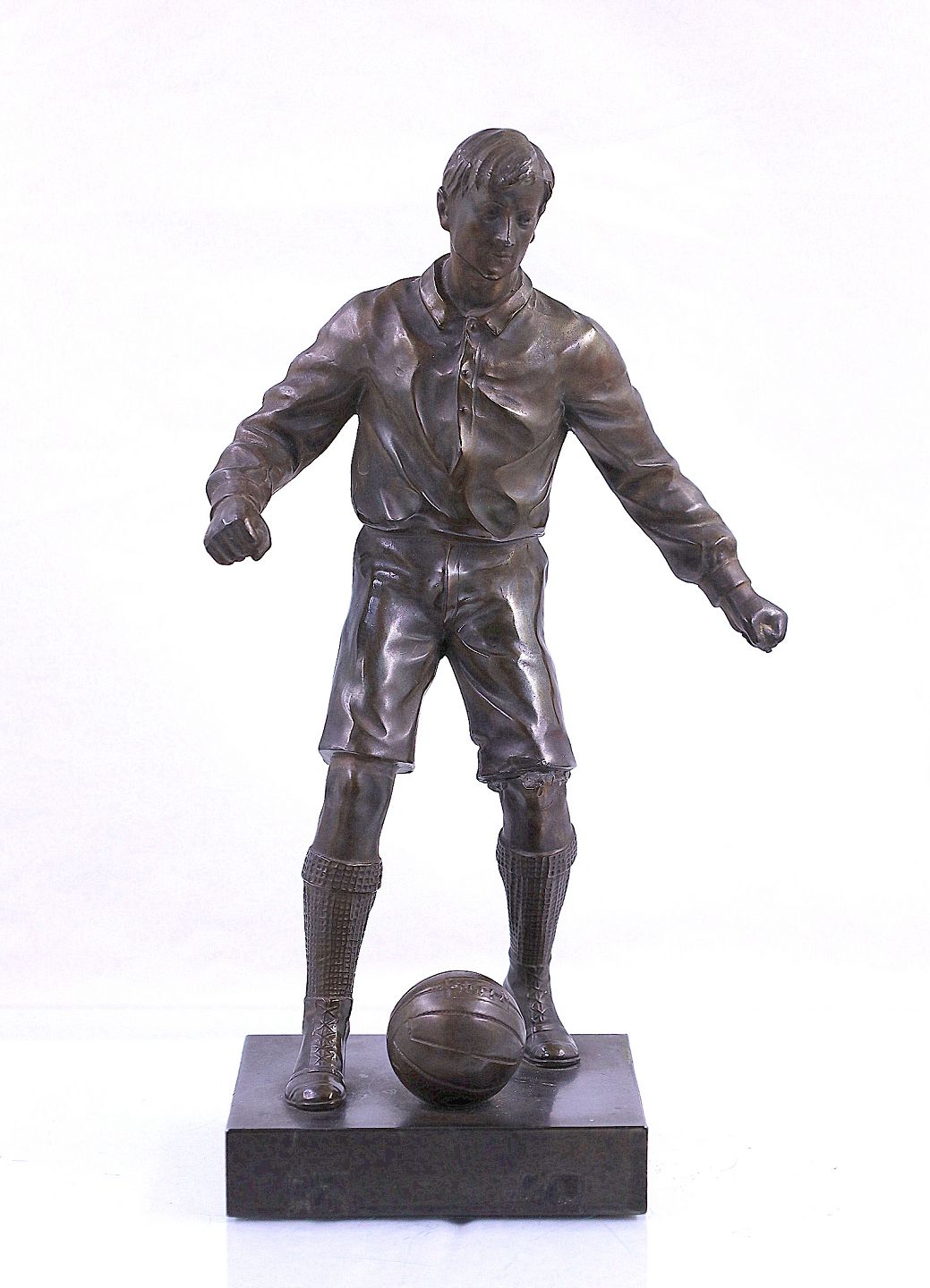Figur af fodboldspiller, udført i bronze. Figuren er uden navn og signatur