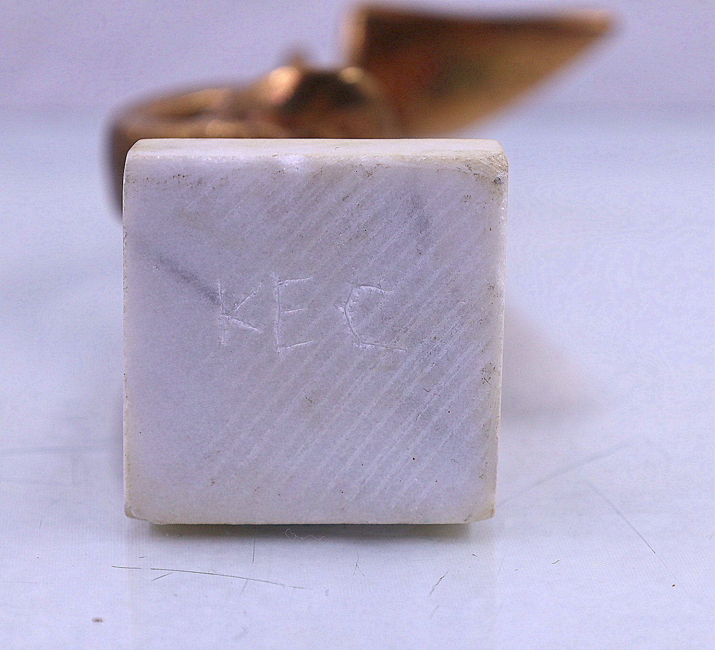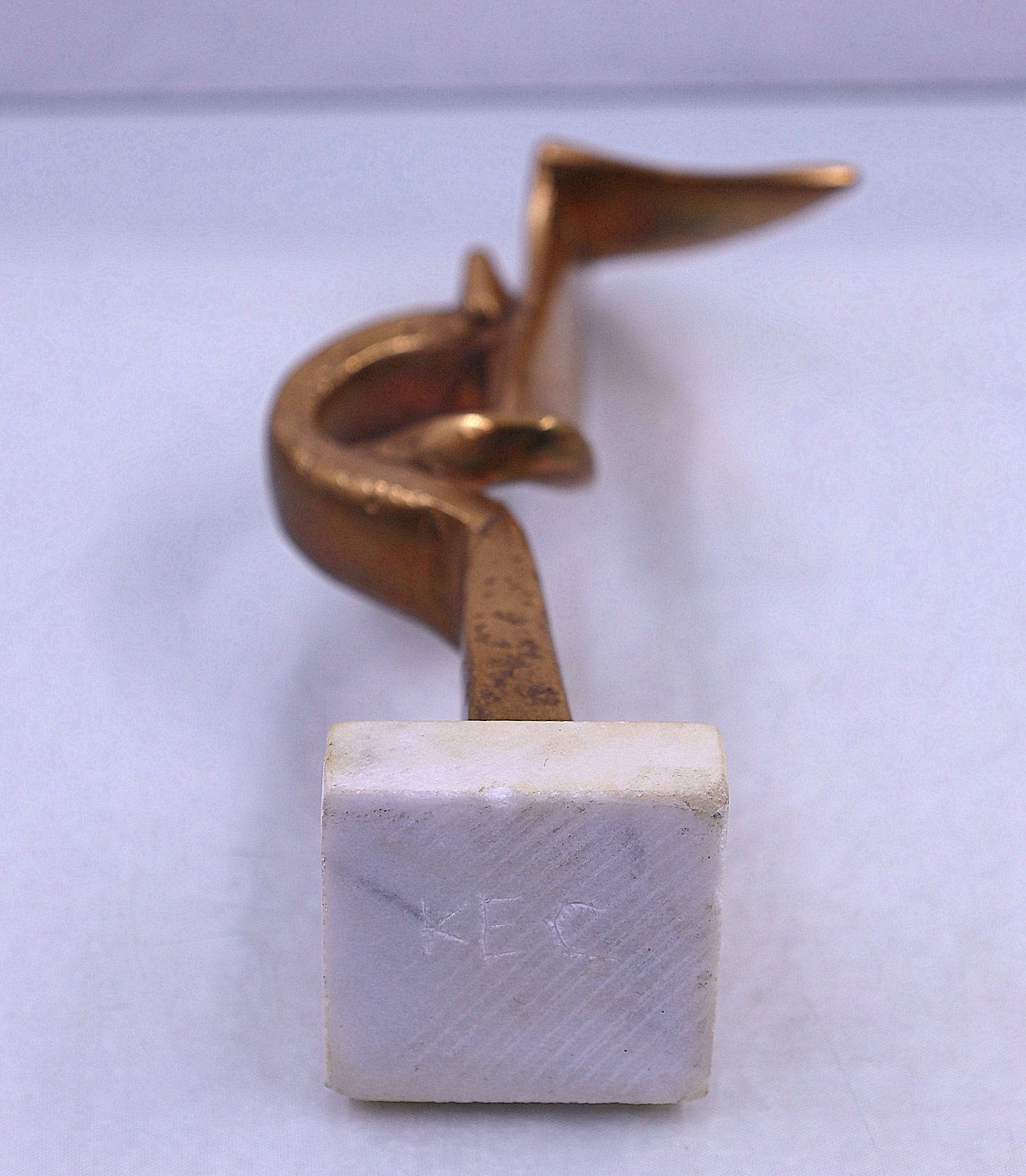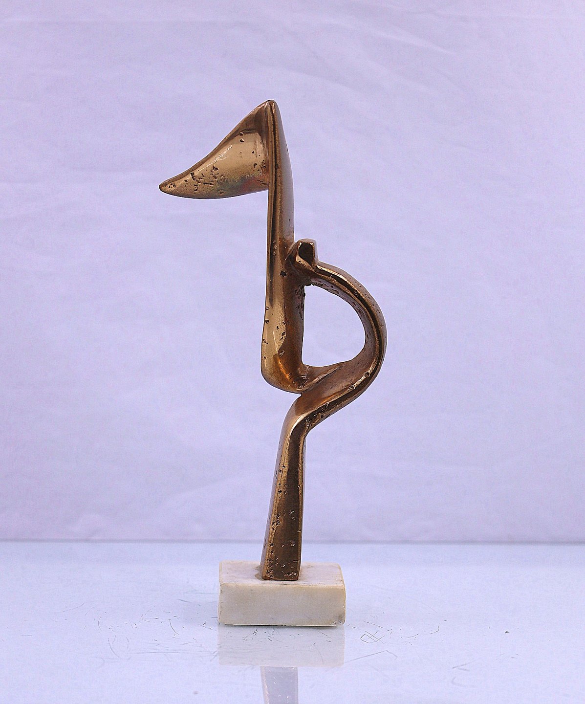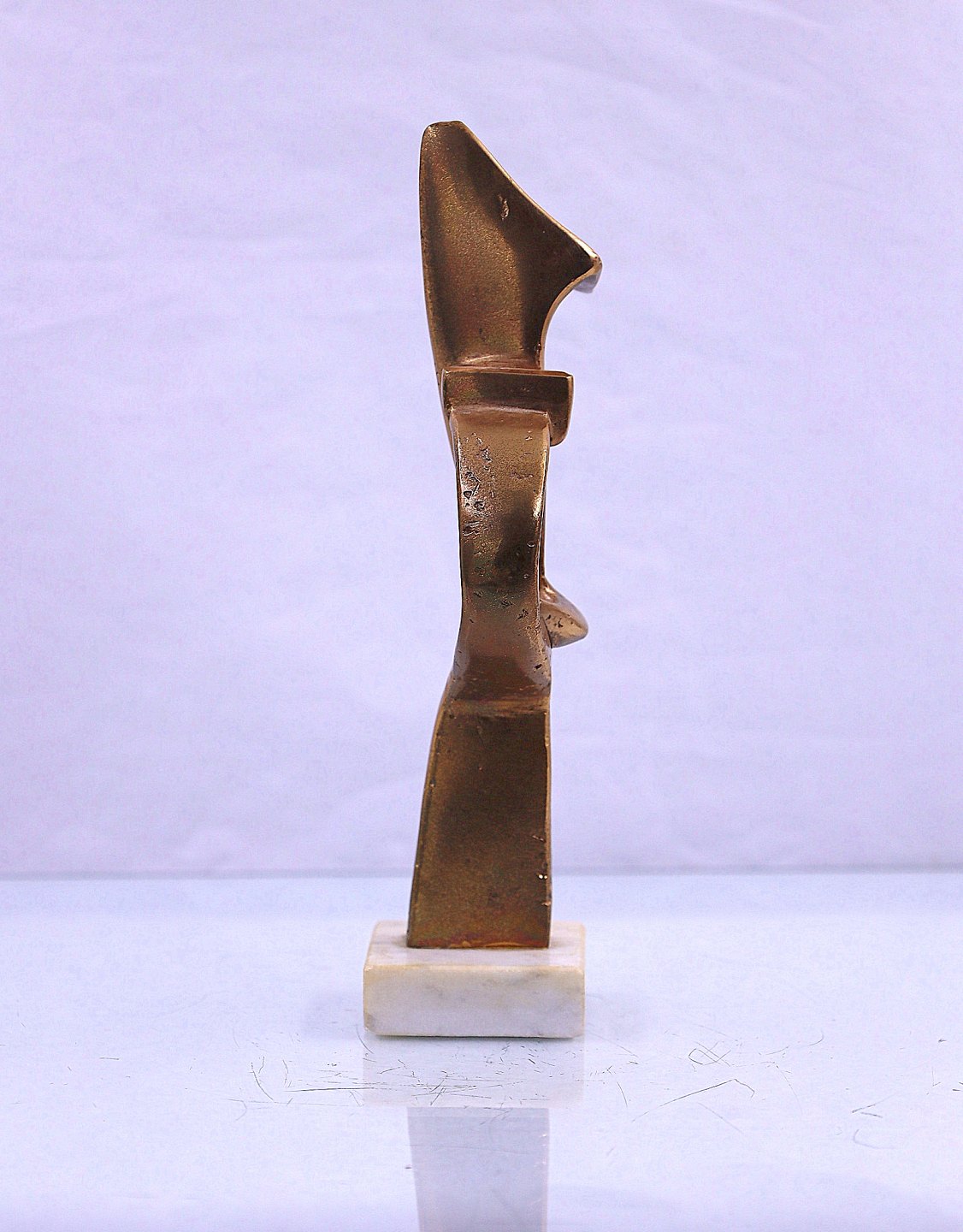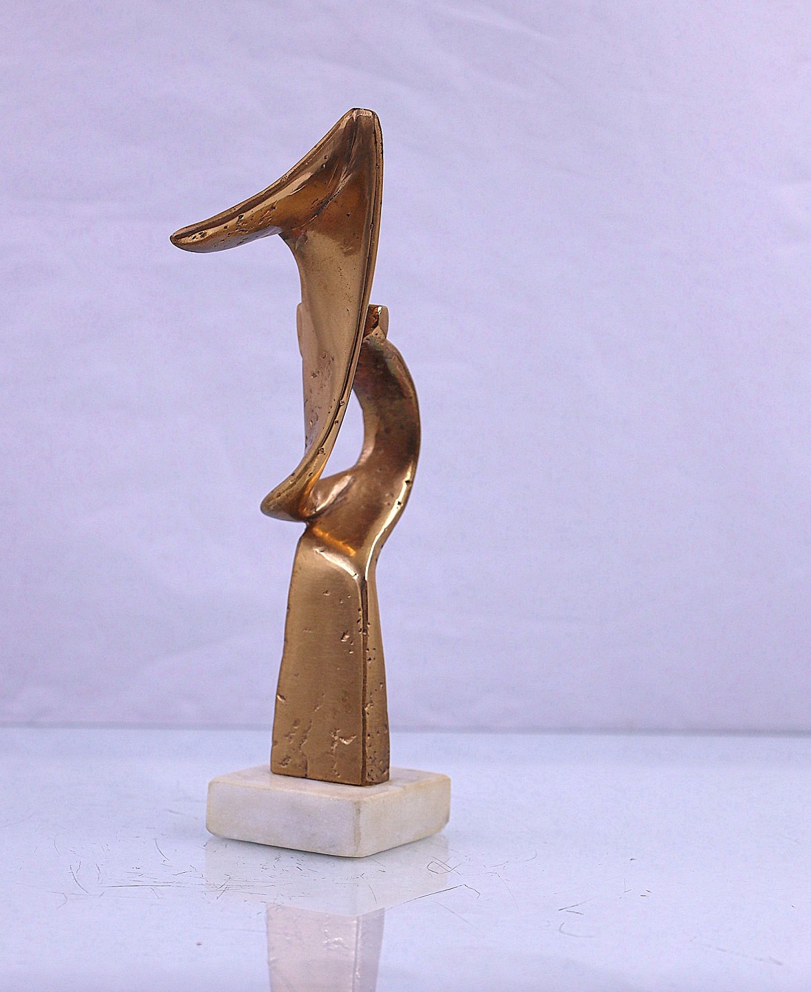Messing skulptur på marmor fod. Skulpturen er lavet af blank poleret messing.