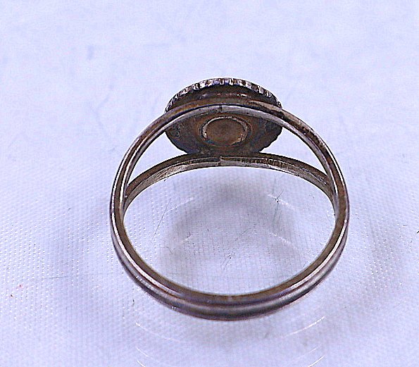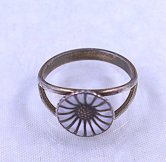 Sølvsmed Anton Michelsen. Sølv, 925s, Marguerite ring, ringen er forgyldt sølv med emalje. Blev oprindeligt fremstillet hos Anton Michelsen. For få år siden genoptog Georg Jensen produktionen under navnet Daisy.