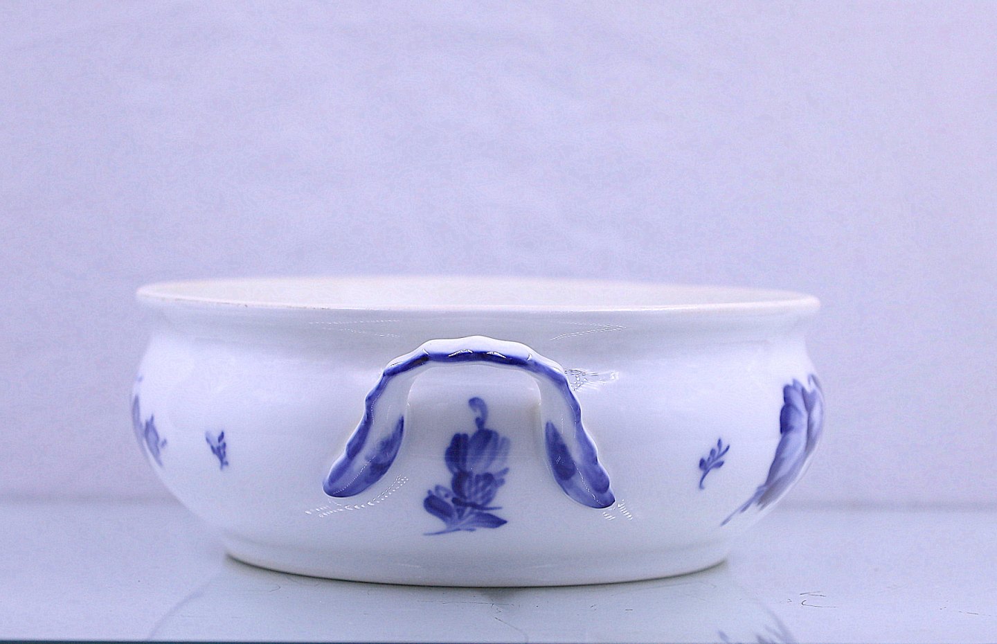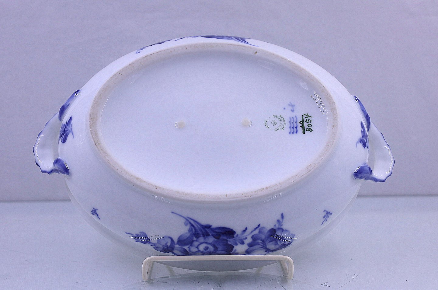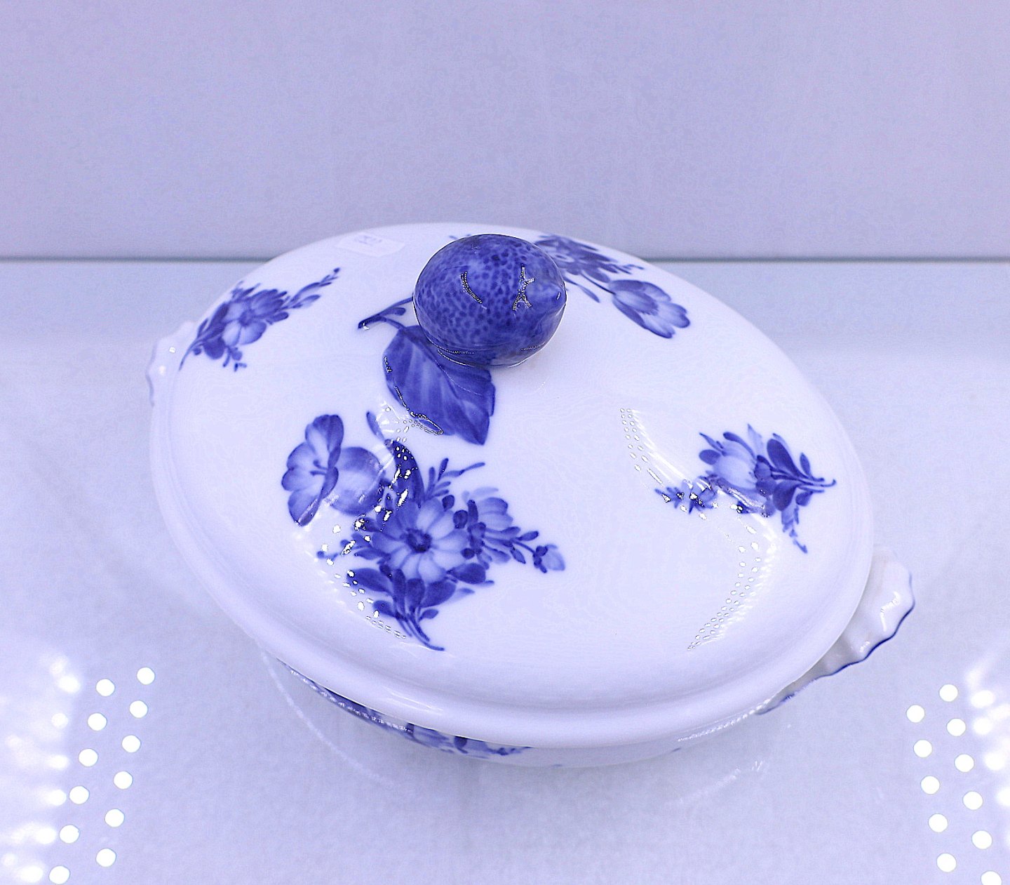 Royal Copenhagen. Blå Blomst, flettet. Ovalt lågfad Nr. 10/8054. Fad og låg har samme nr. Blå blomst hører til rækken af hvid og blå porcelæn Royal Copenhagen har lavet