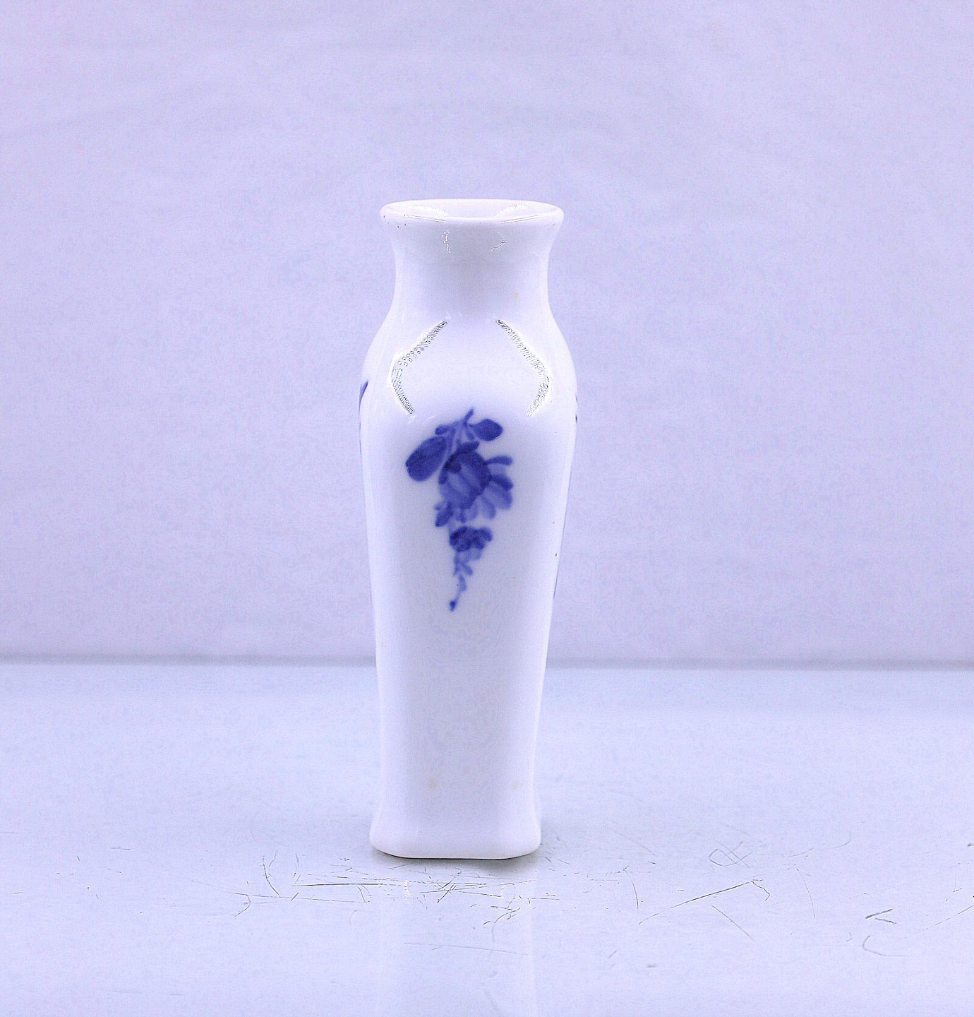 Royal Copenhagen. Vase, nr. 10/8256, flettet kant. Blå blomst hører til rækken af hvid og blå porcelæn Royal Copenhagen har lavet.