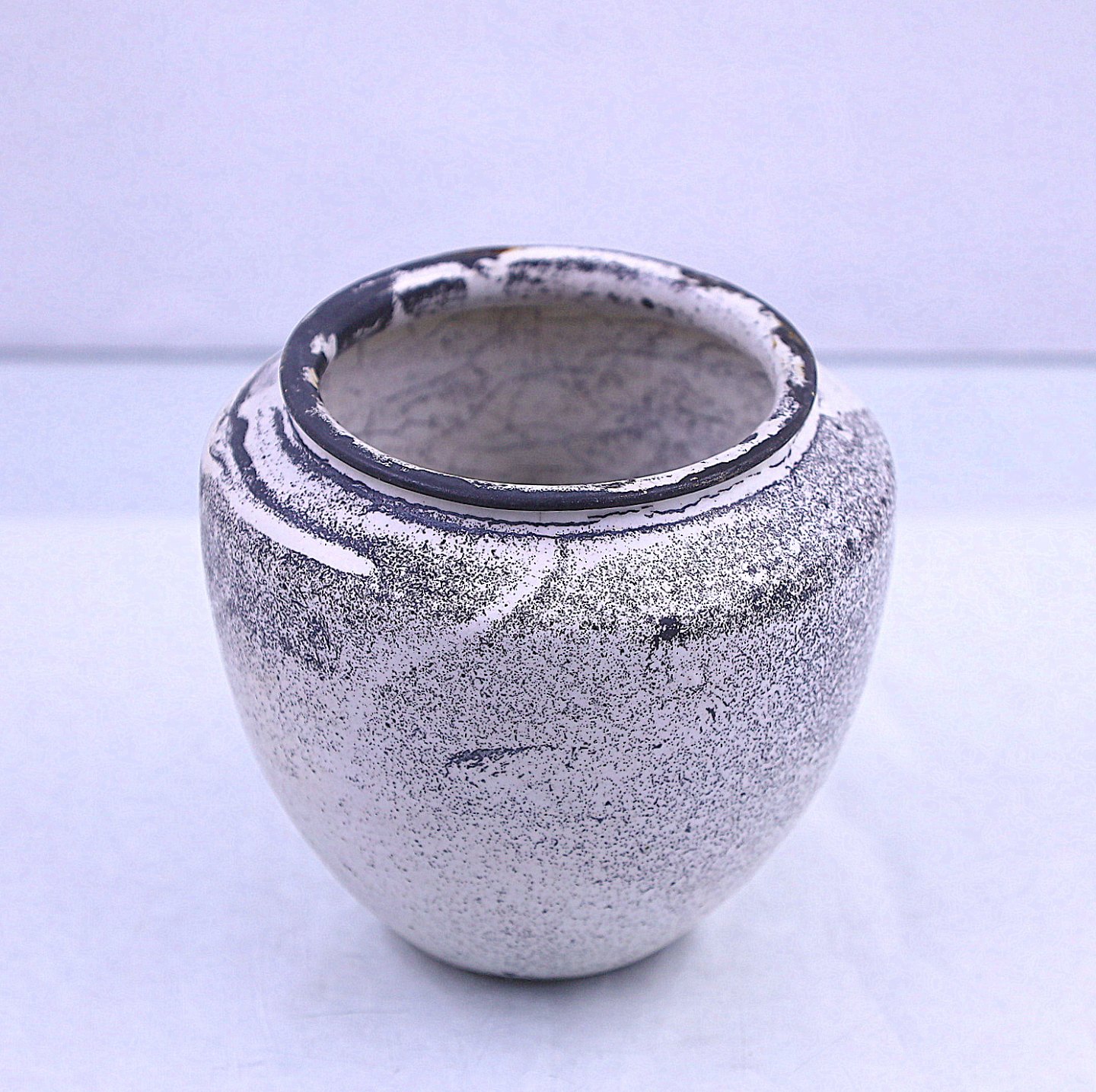 Indvendig er glasuren krakeleret, men der er ingen afslag på vasen.