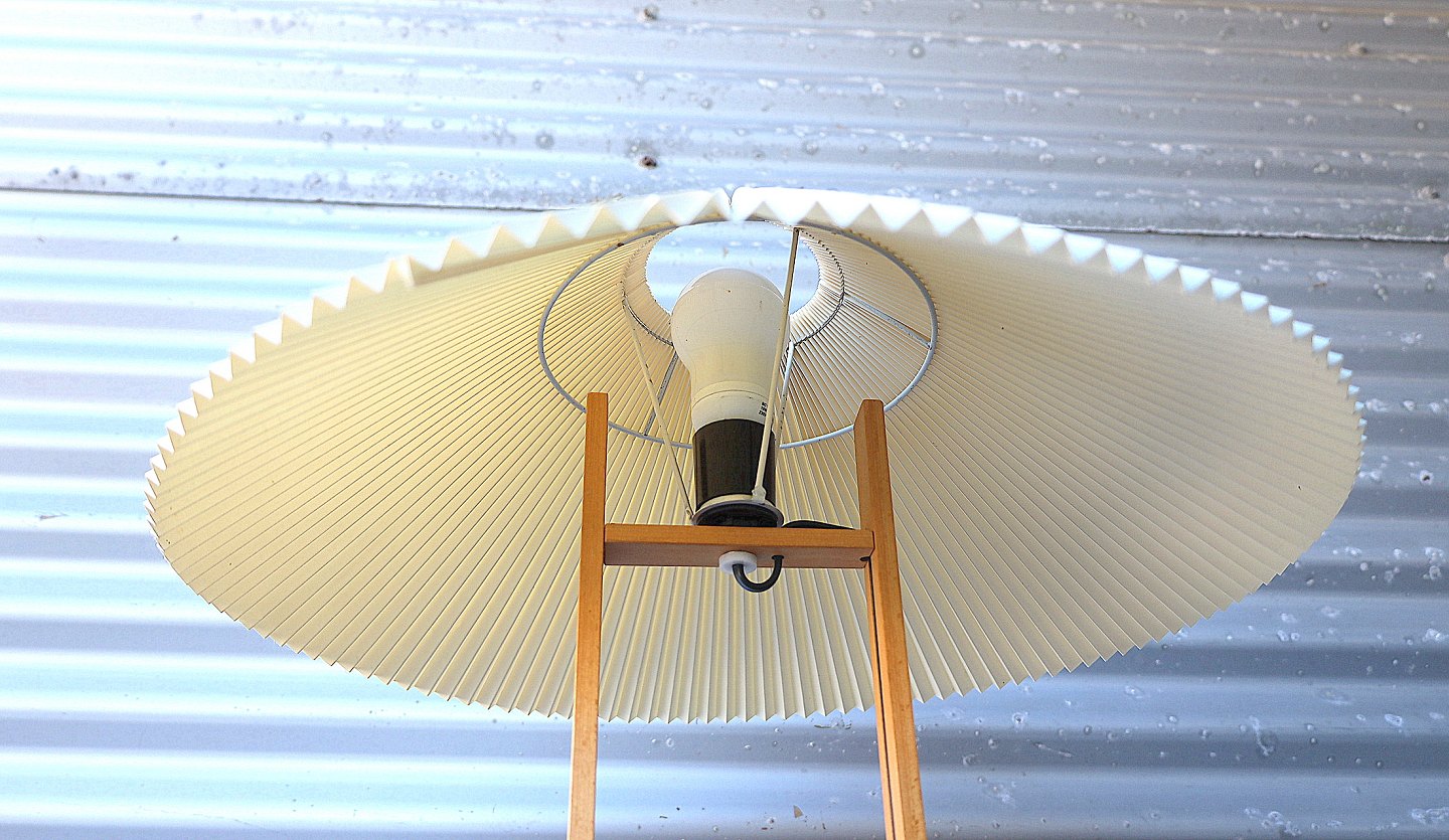 Caprani bordlampe, i formspændt bøg, og, Le Klint, plisseret skærm.