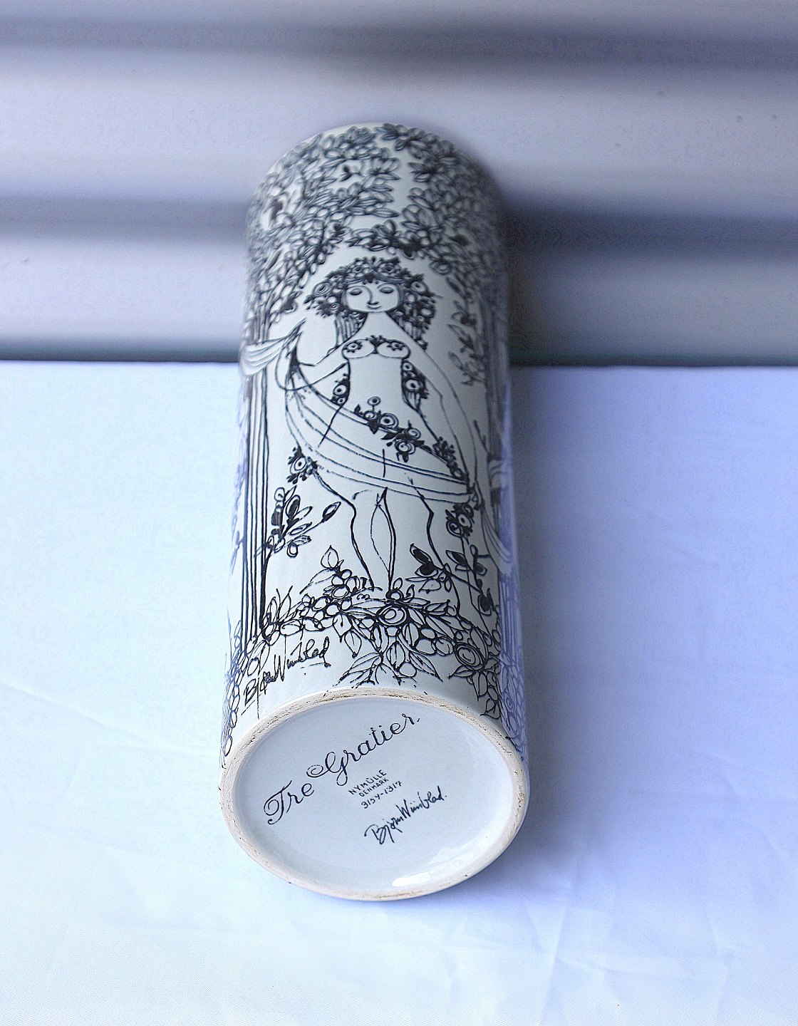 Bjørn Wiinblad. Vase, i keramik, nr. 3159-1317, "Tre Gratier. Vase med sort streg, som dekor.