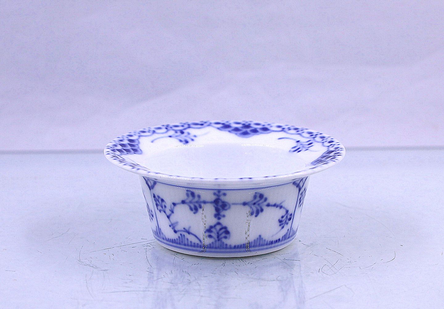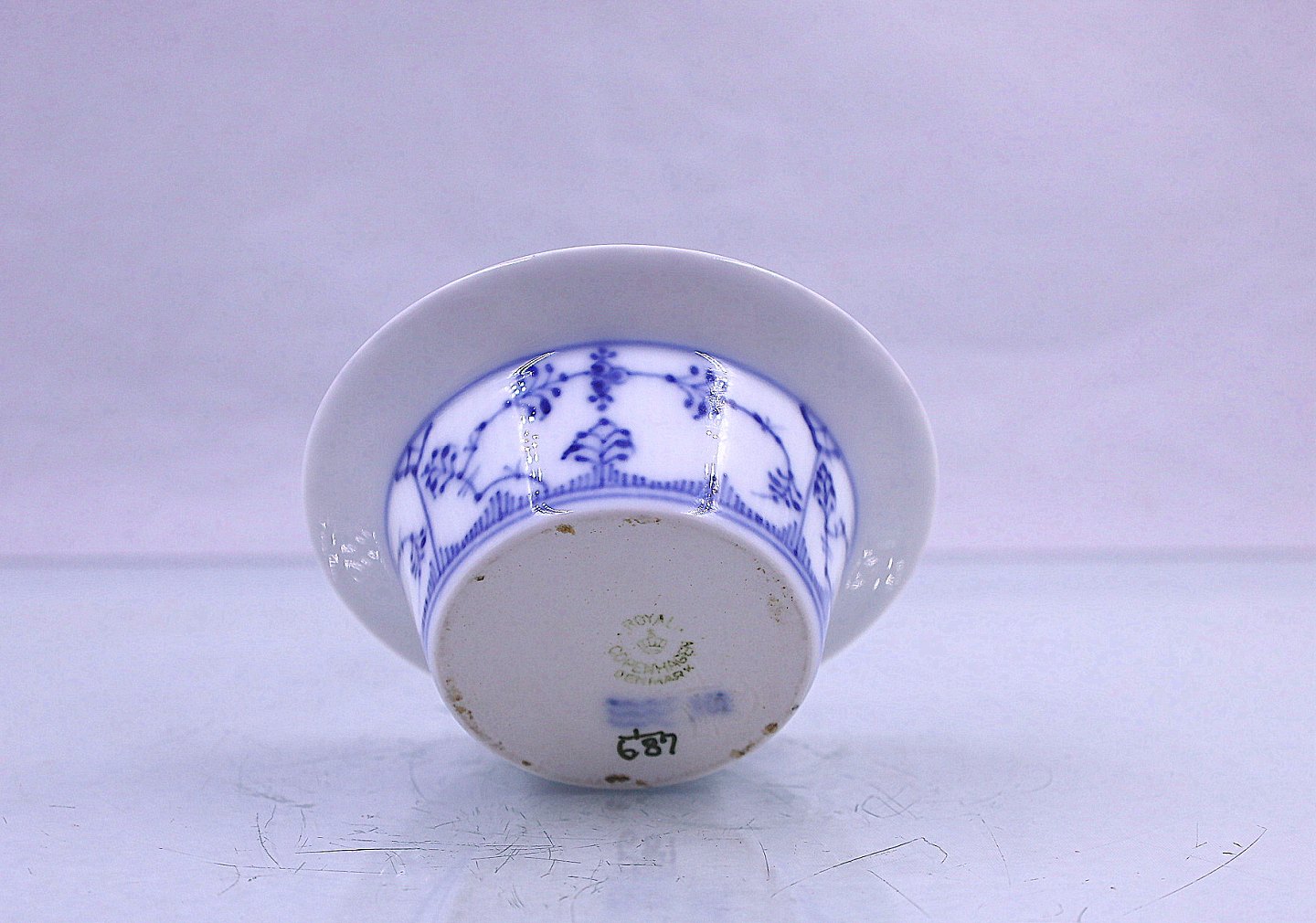 Royal Copenhagen. Musselmalet, halvblonde skål, nr. 1/687. Skålen er med udsvejfet kant og i de klassiske blå og hvide farver.
